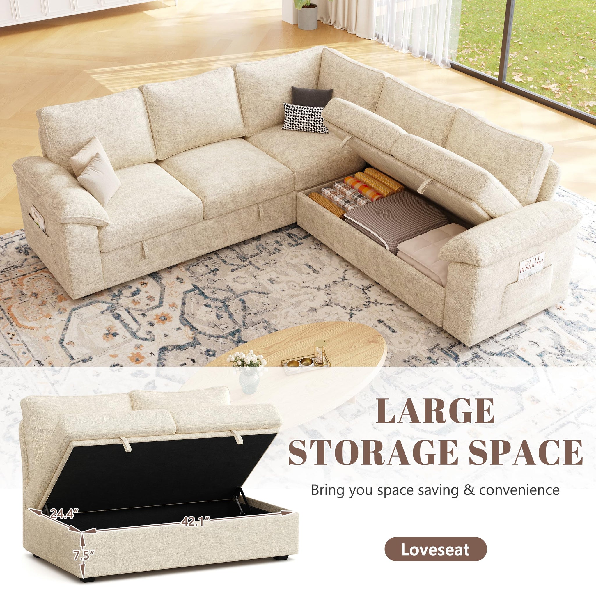 • Built to Last: The 108 inch modular sleeper sofa supports up to 300 LBS per seat, featuring a solid wood frame and sturdy bolts connectors for reliable support, ensuring long-lasting comfort for every moment you spend relaxing