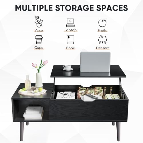 Adjustable Lift-Top for Work & Dining - This coffee table features a smooth-lifting tabletop that raises to 6.3" (supporting 11 lbs), creating the perfect ergonomic workspace for laptops or dining. The sturdy steel hinge mechanism ensures stability at any height, while the recessed finger-safe opening prevents pinching.