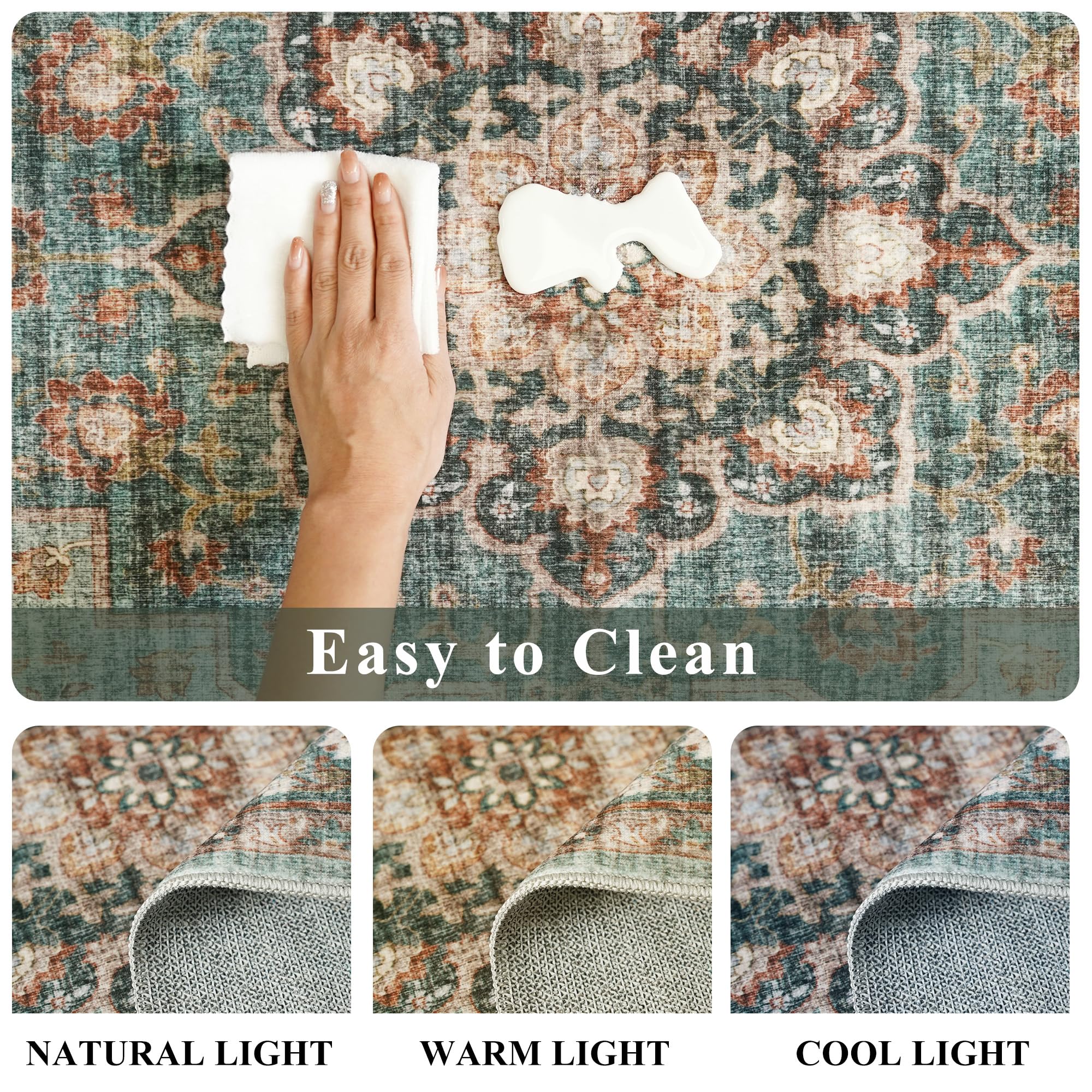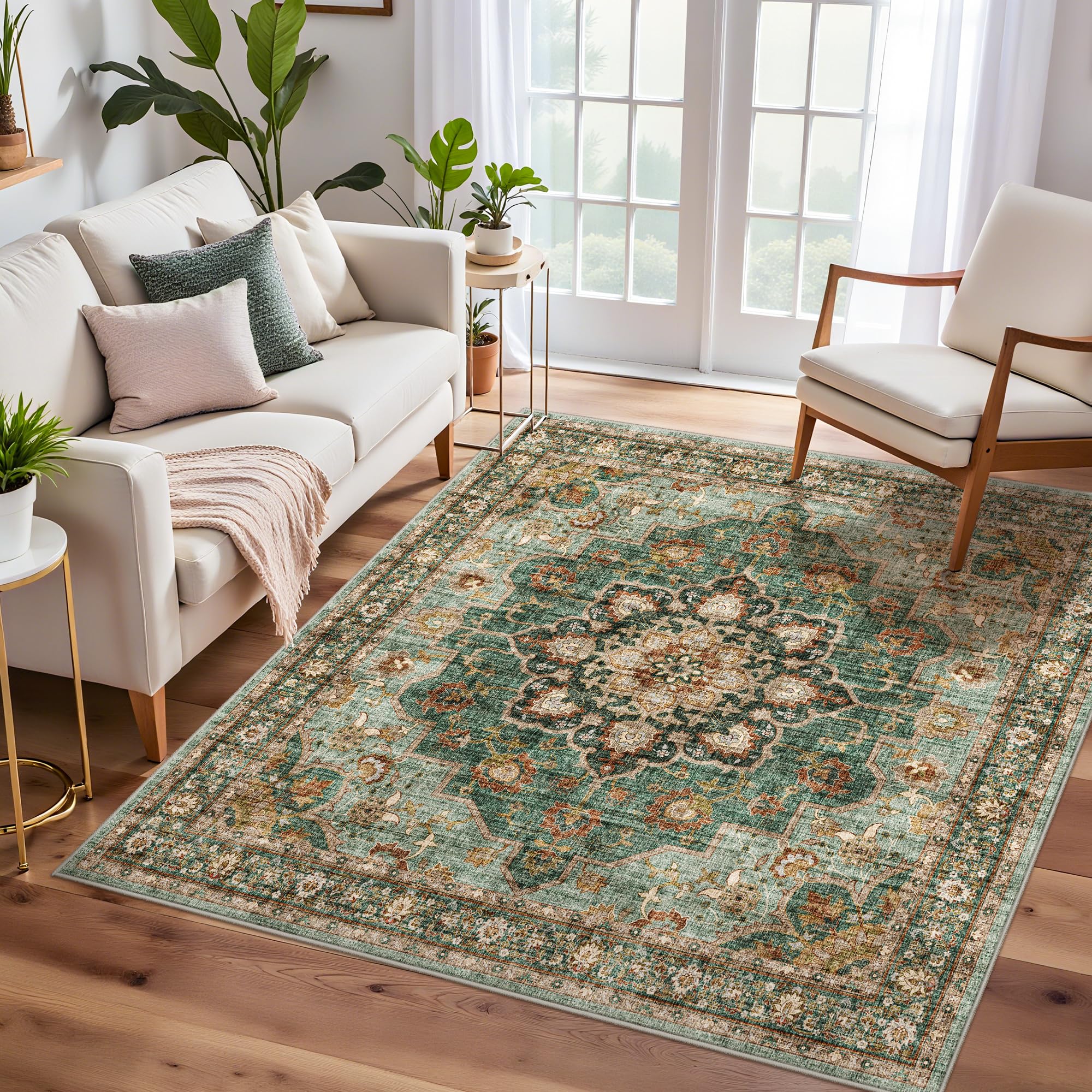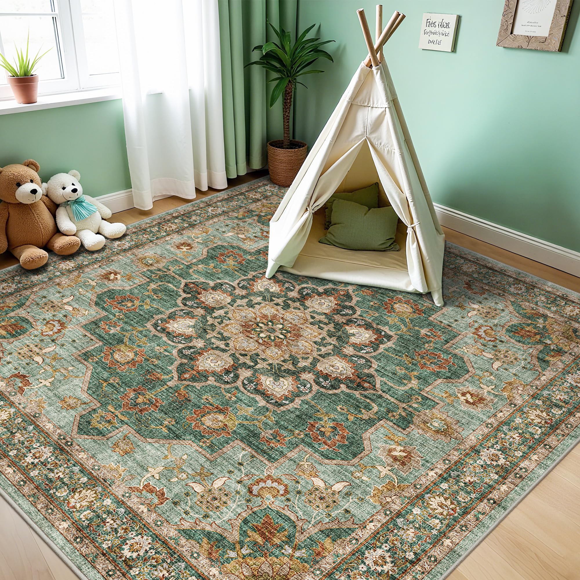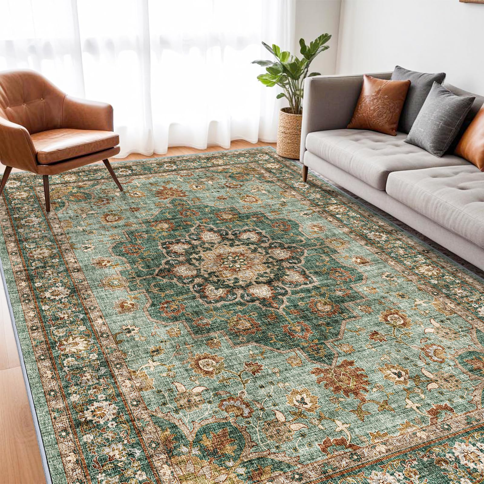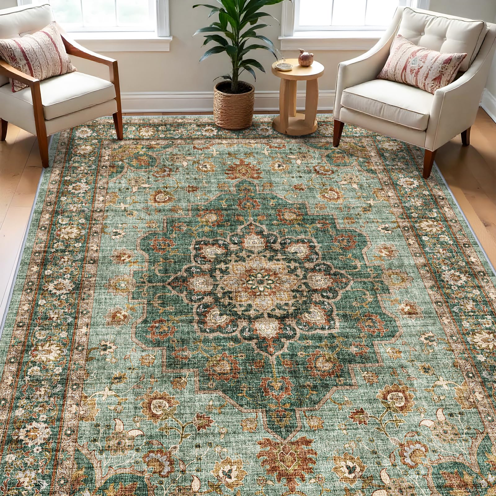 TOPRUUG Washable Oriental Area Rug - 12x15 Rugs for Living Room Soft Carpet for Bedroom Waterproof Floral Distressed Indoor Stain Resistant Non-Shedding Floor Carpets (Green, 12x15)