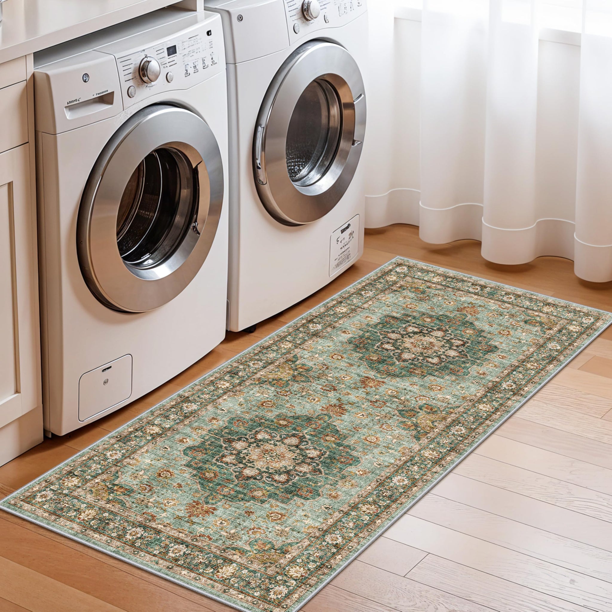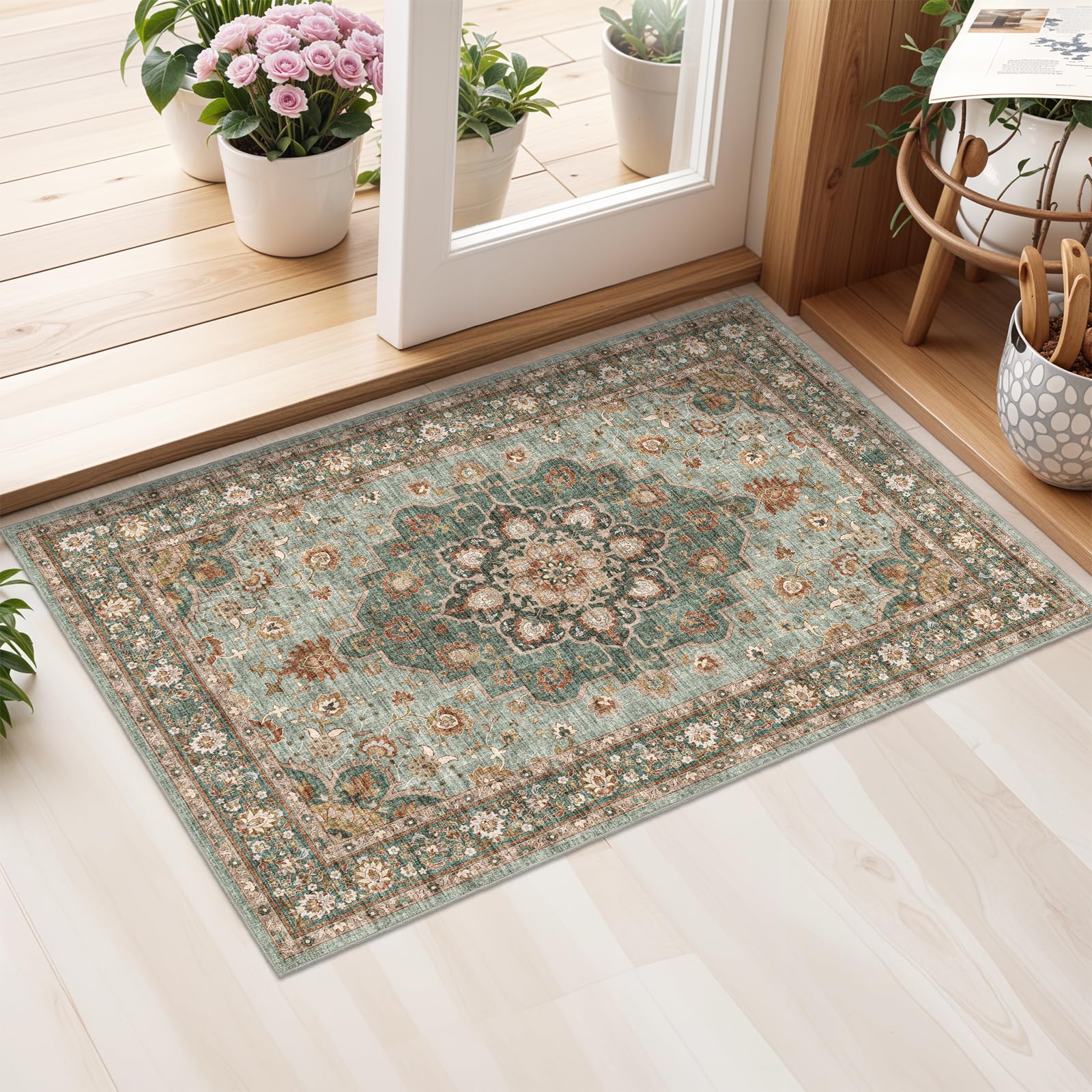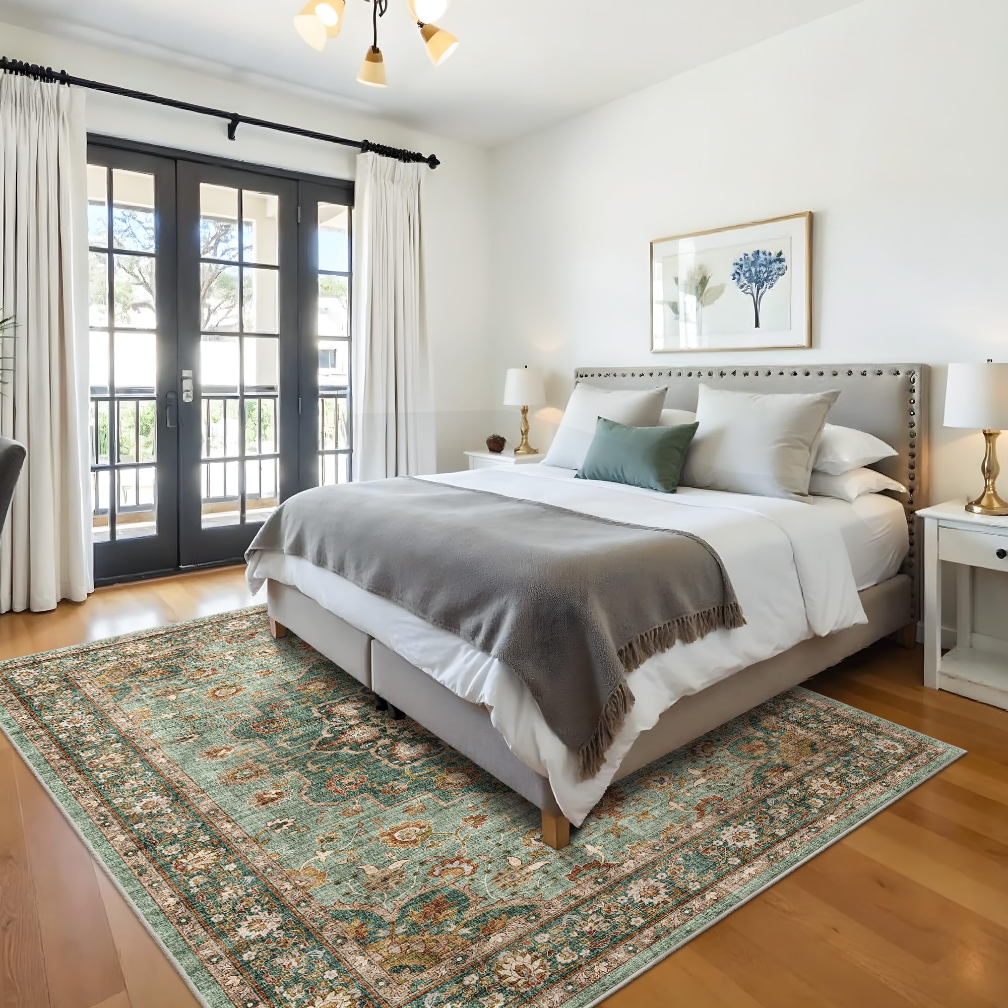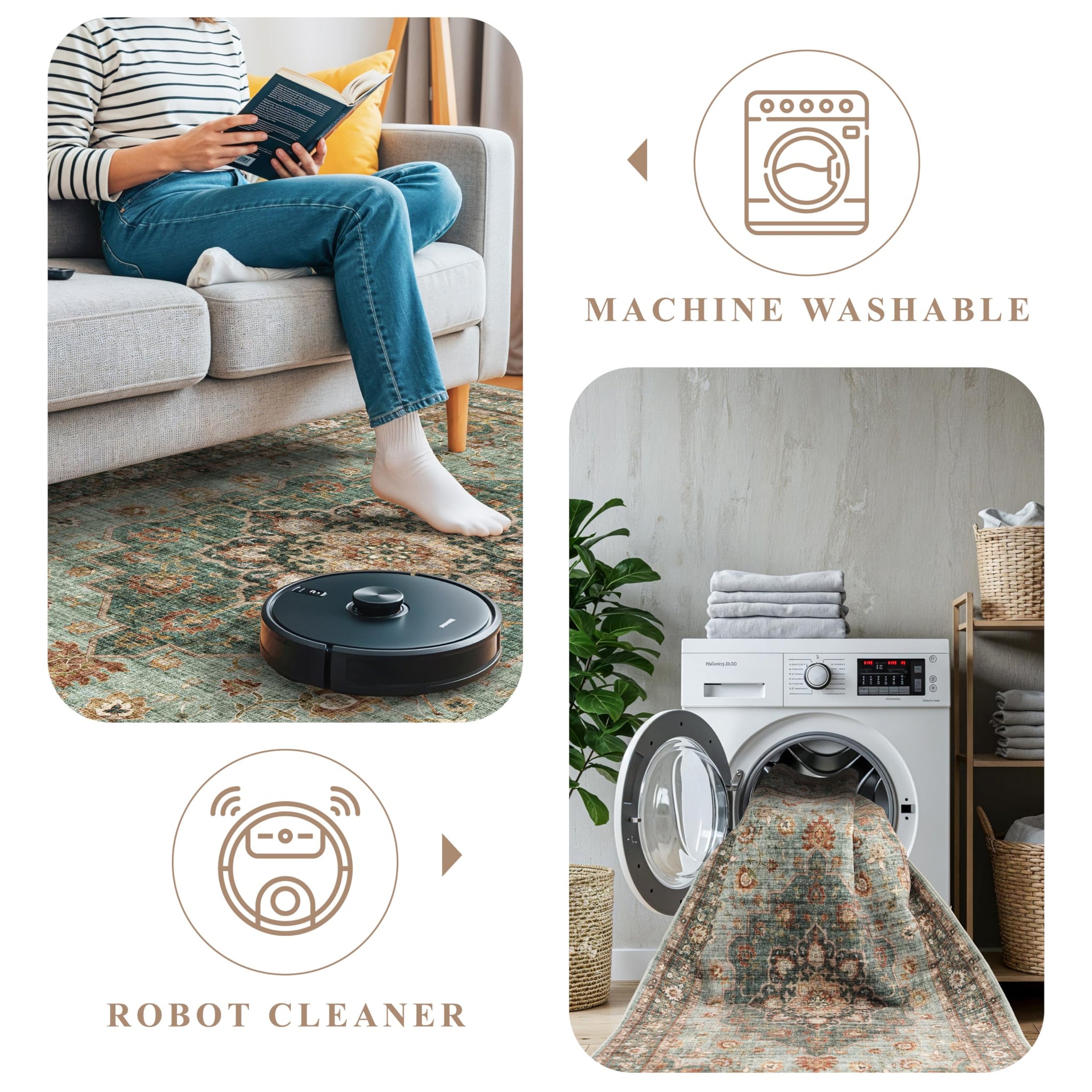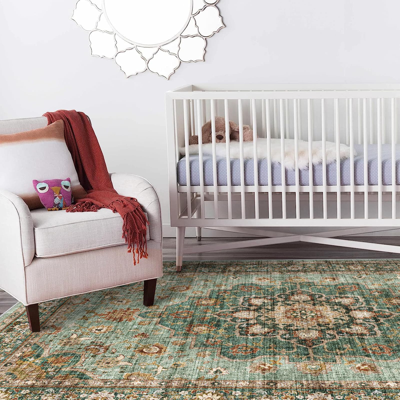 TOPRUUG Washable Oriental Area Rug - 12x15 Rugs for Living Room Soft Carpet for Bedroom Waterproof Floral Distressed Indoor Stain Resistant Non-Shedding Floor Carpets (Green, 12x15)