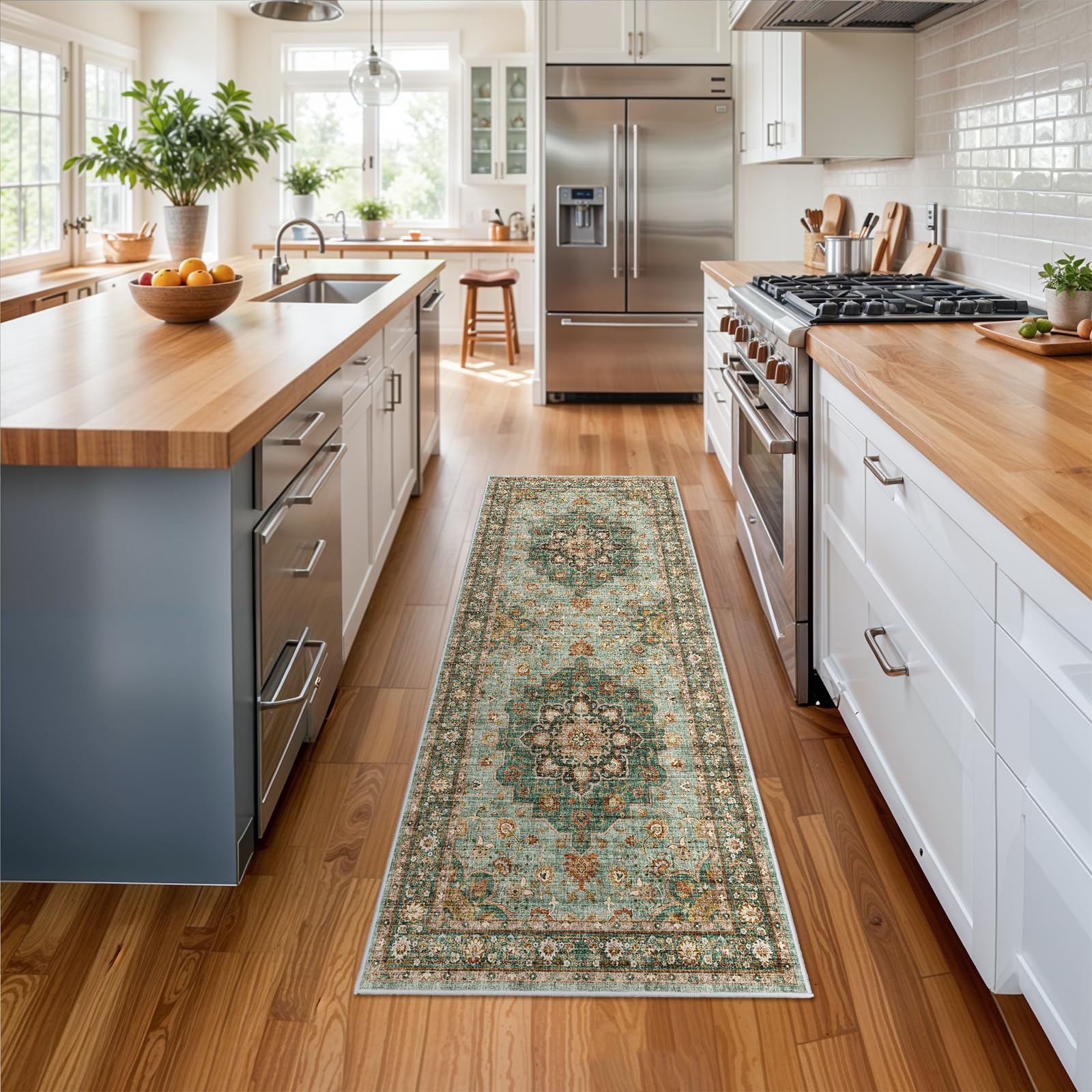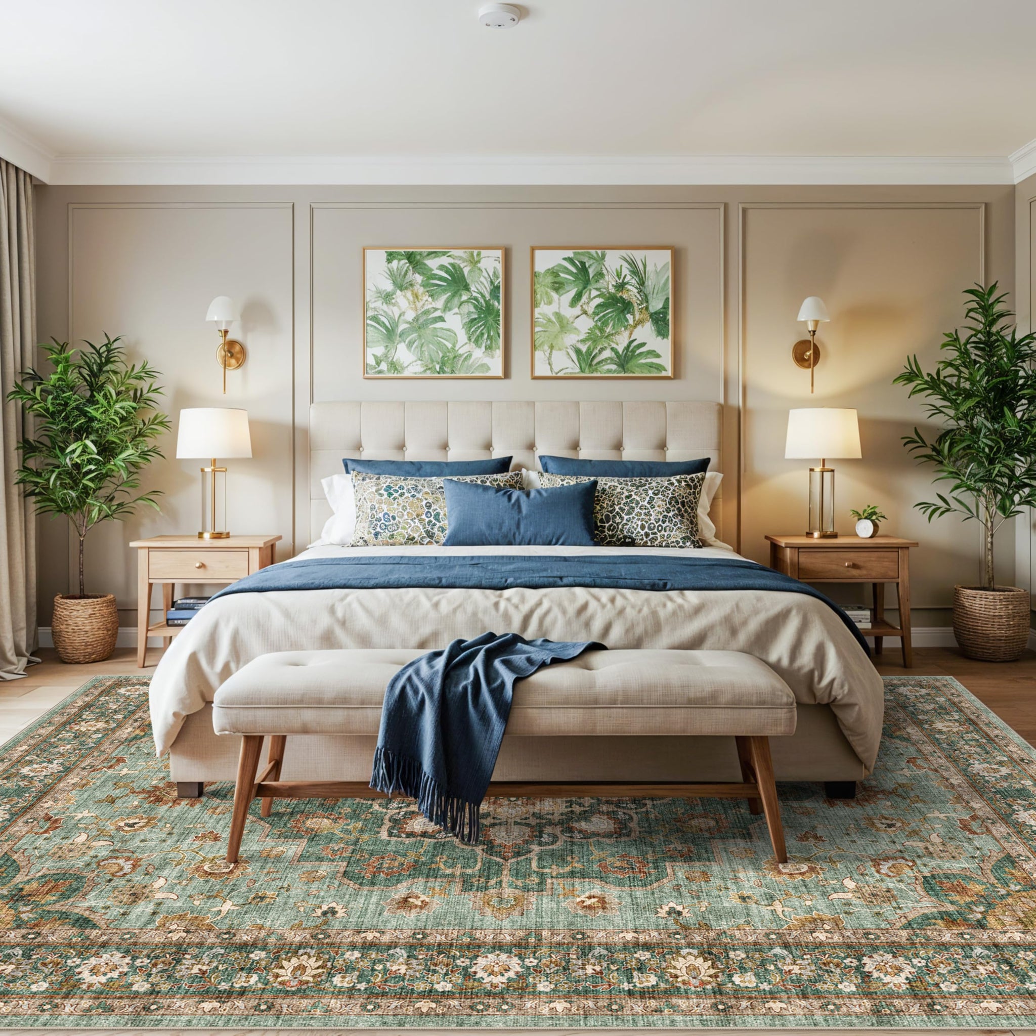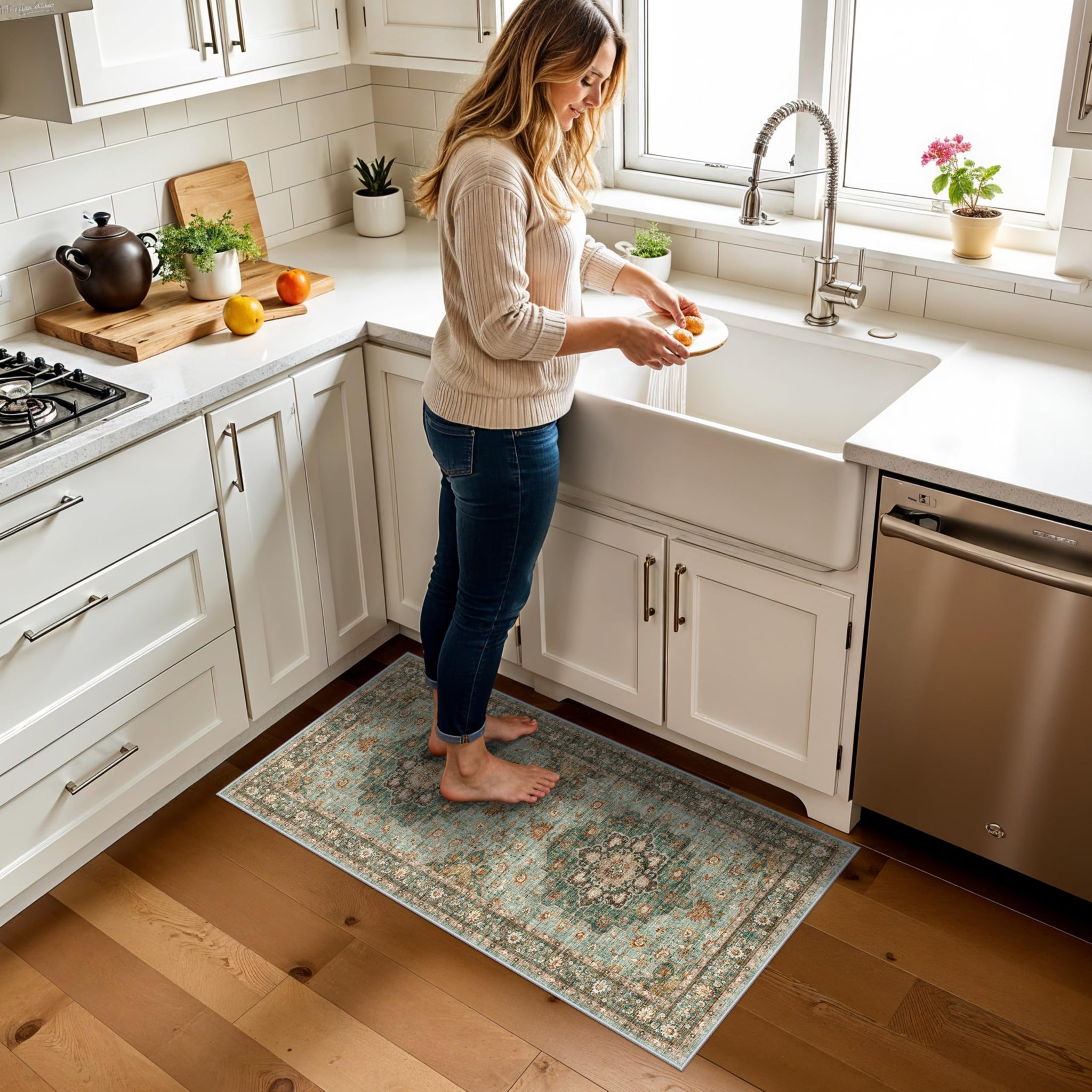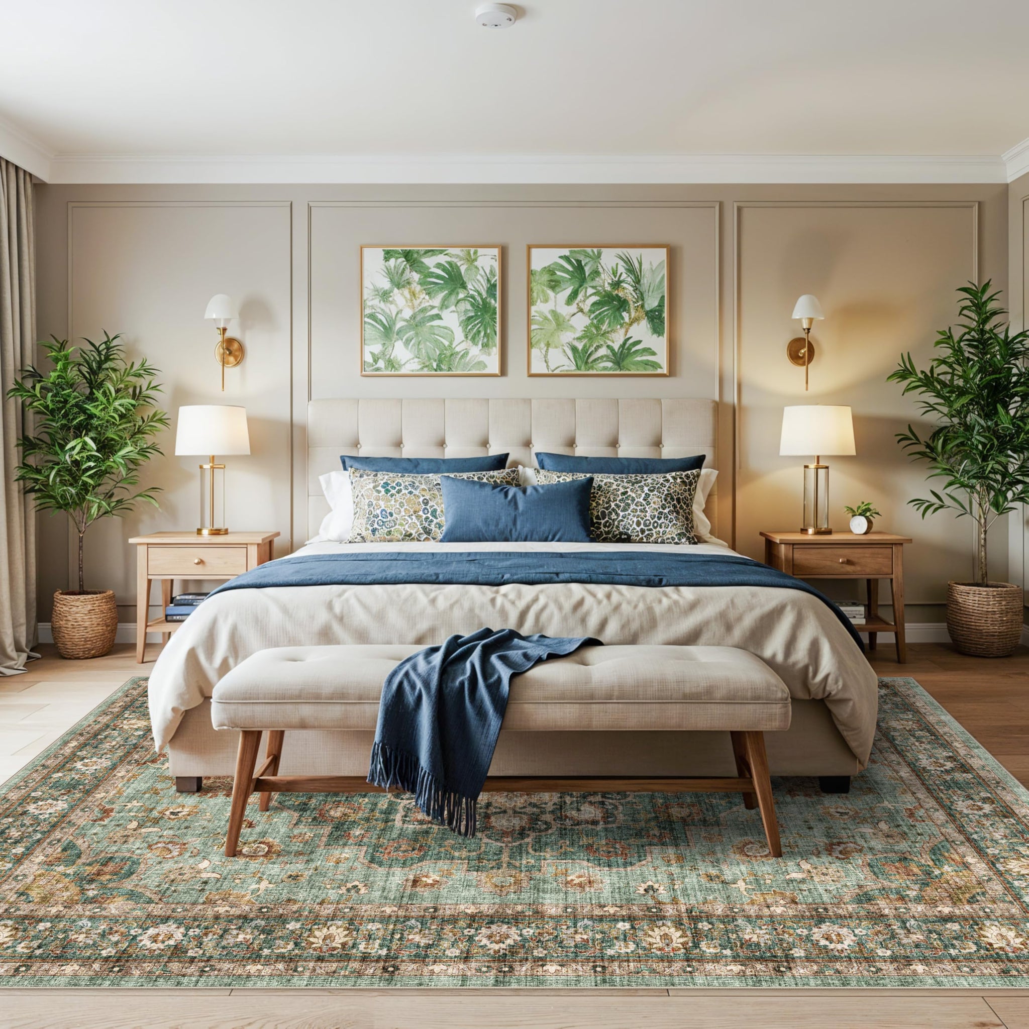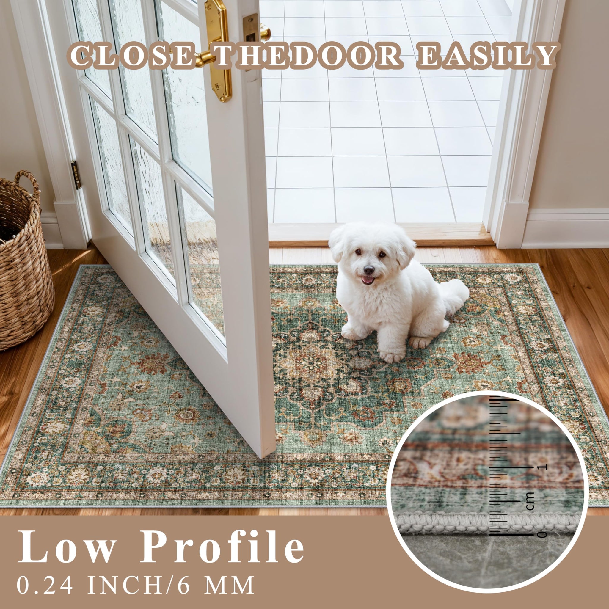 TOPRUUG Washable Oriental Area Rug - 12x15 Rugs for Living Room Soft Carpet for Bedroom Waterproof Floral Distressed Indoor Stain Resistant Non-Shedding Floor Carpets (Green, 12x15)