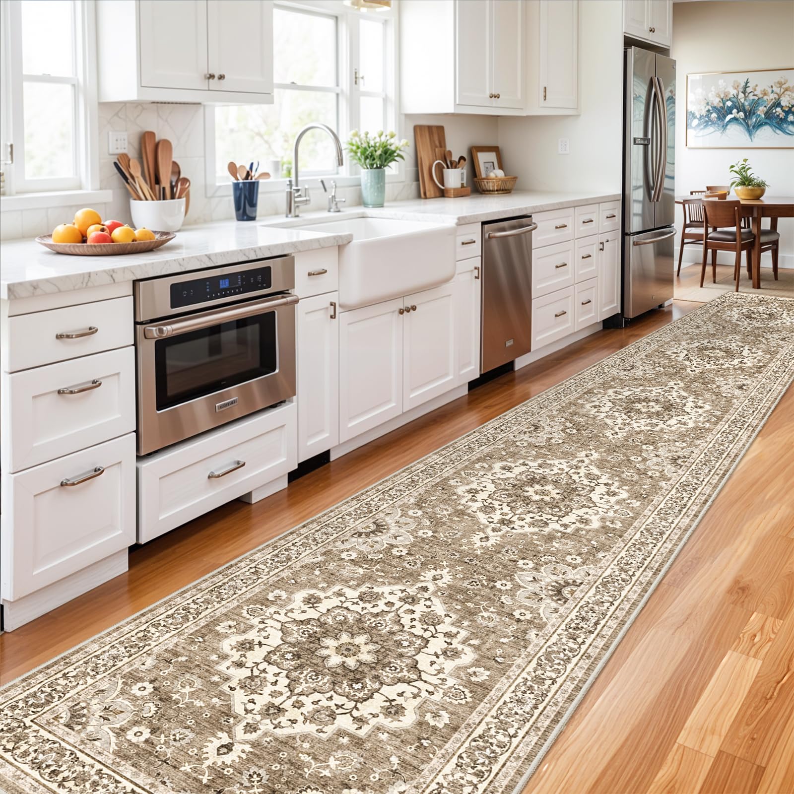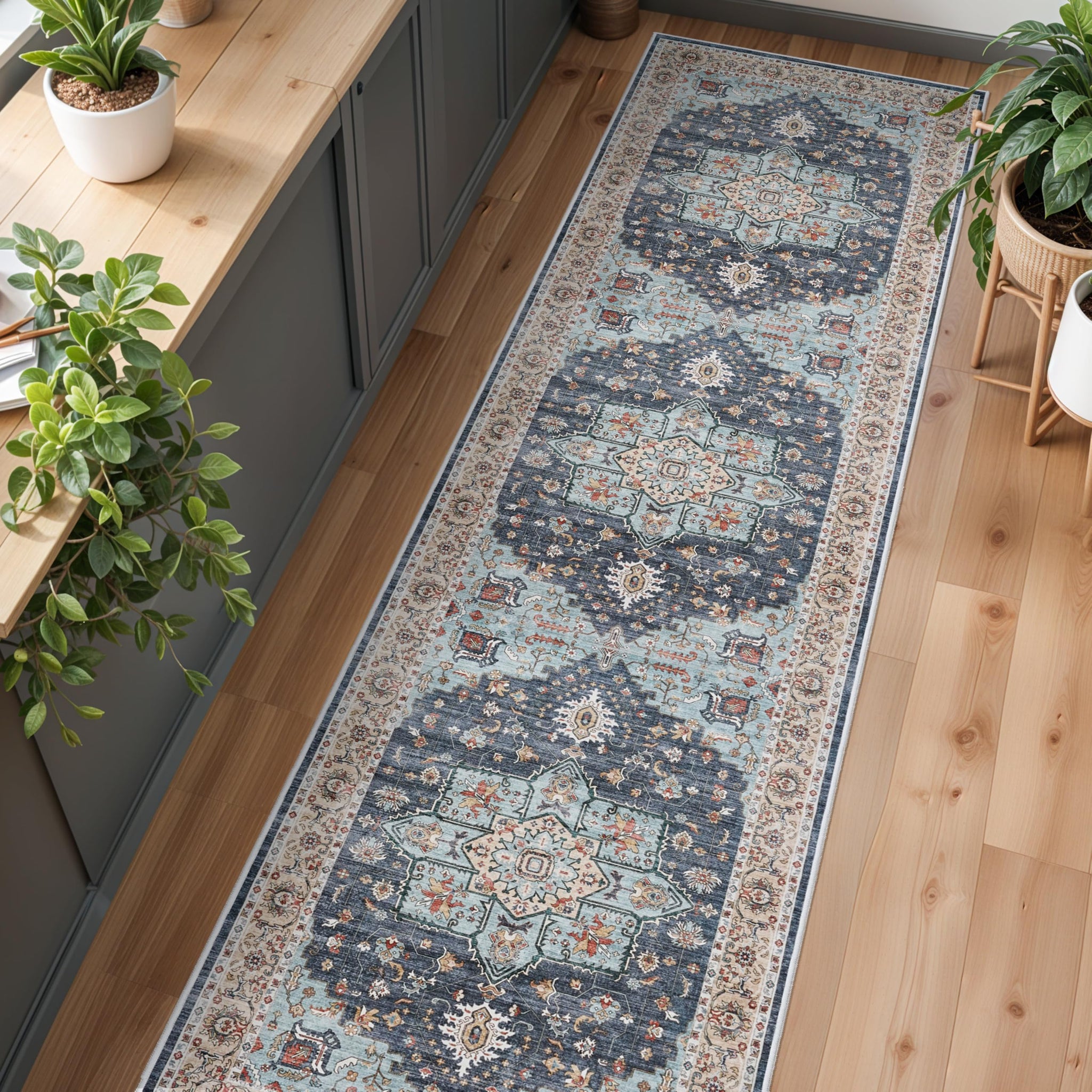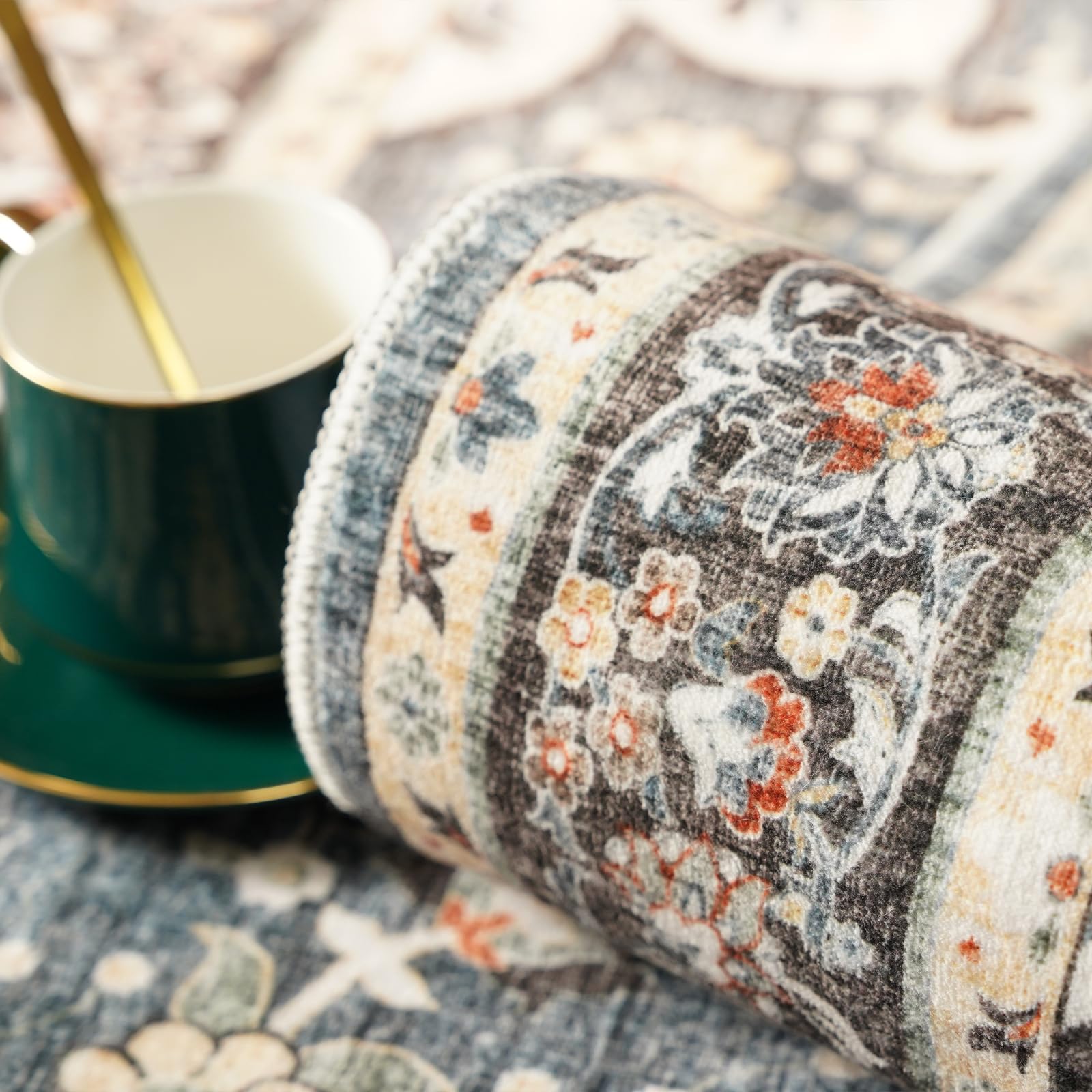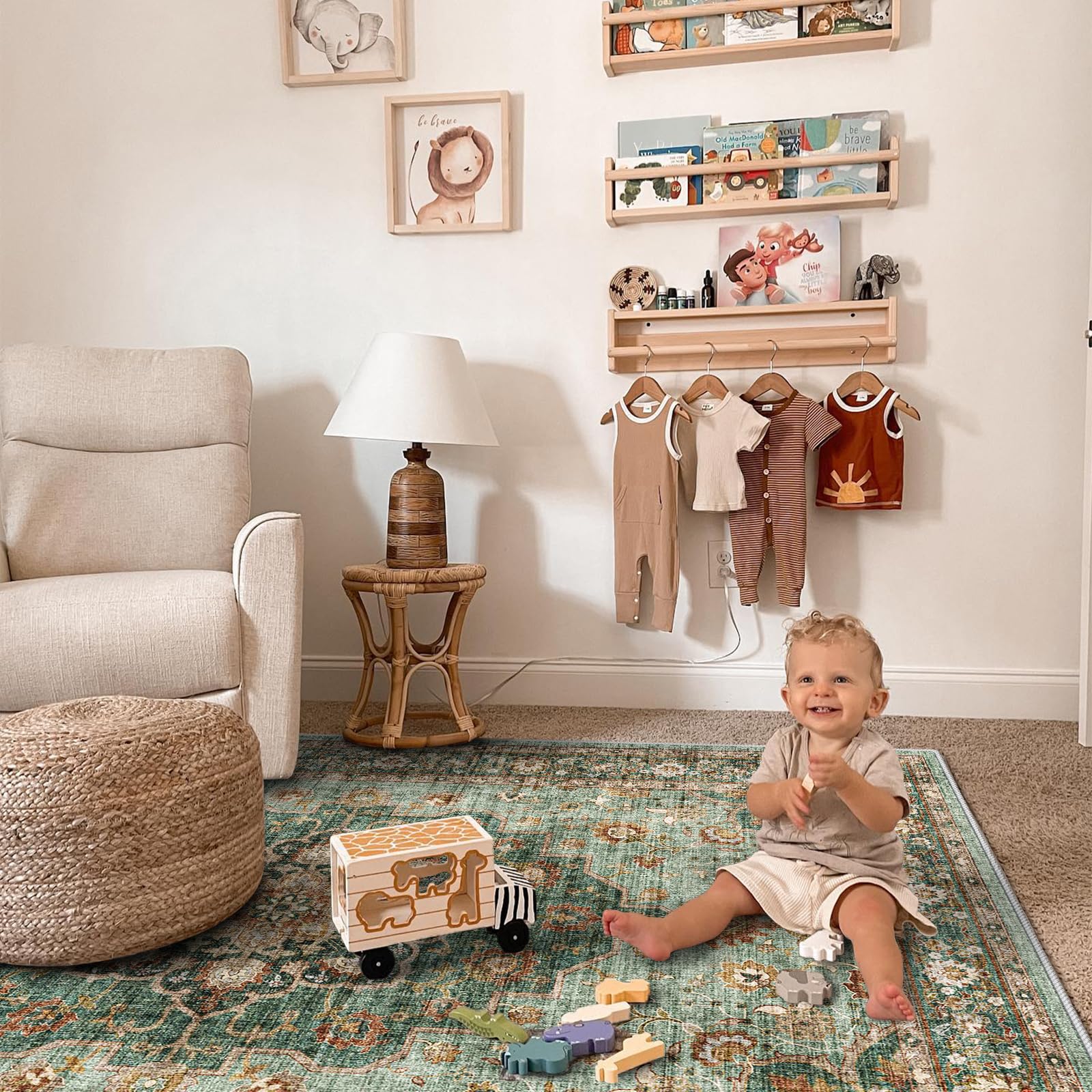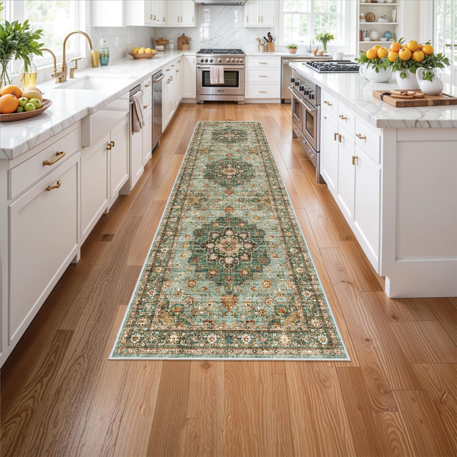 TOPRUUG Washable Oriental Area Rug - 12x15 Rugs for Living Room Soft Carpet for Bedroom Waterproof Floral Distressed Indoor Stain Resistant Non-Shedding Floor Carpets (Green, 12x15)