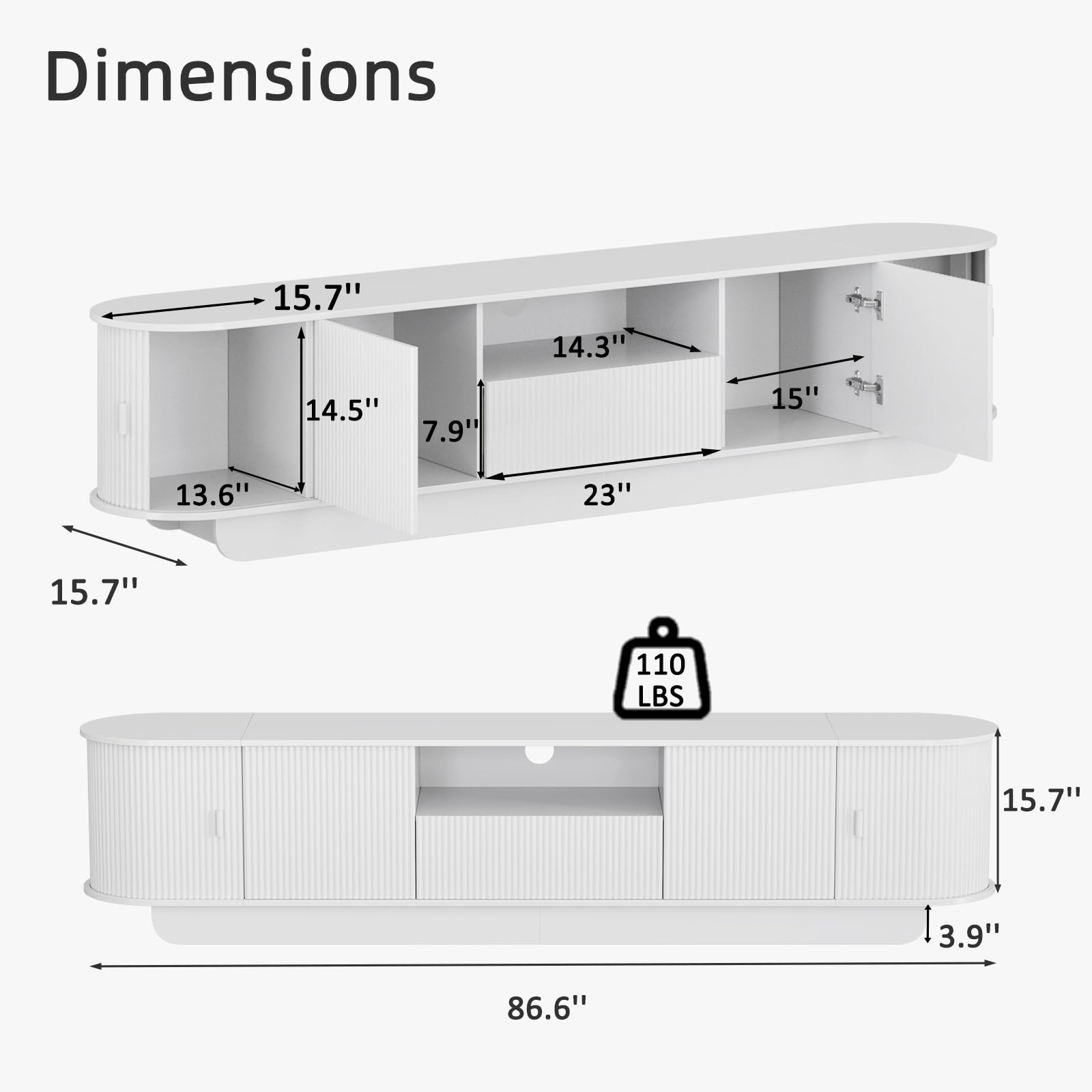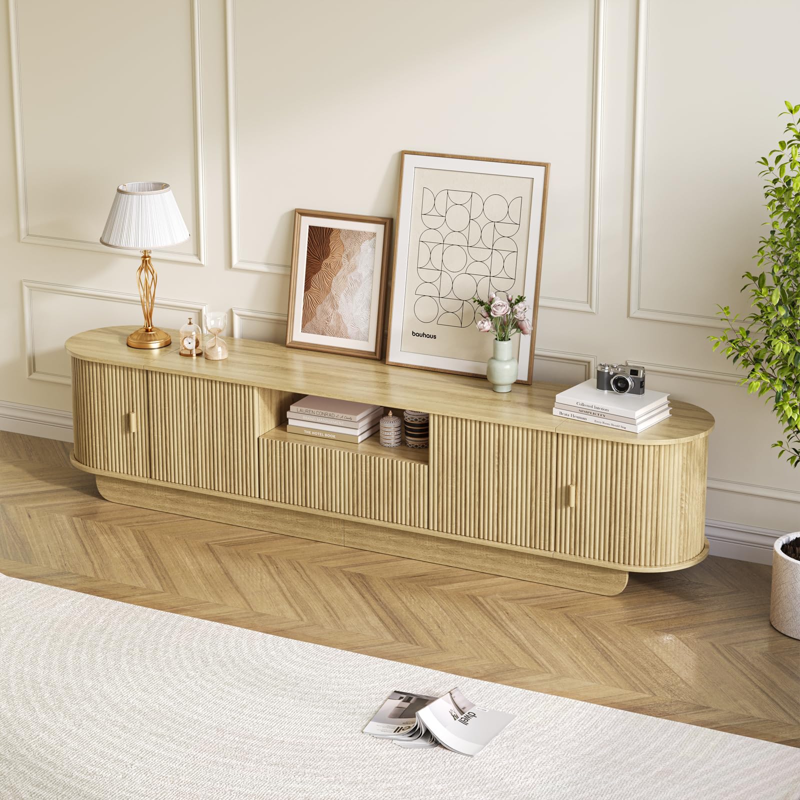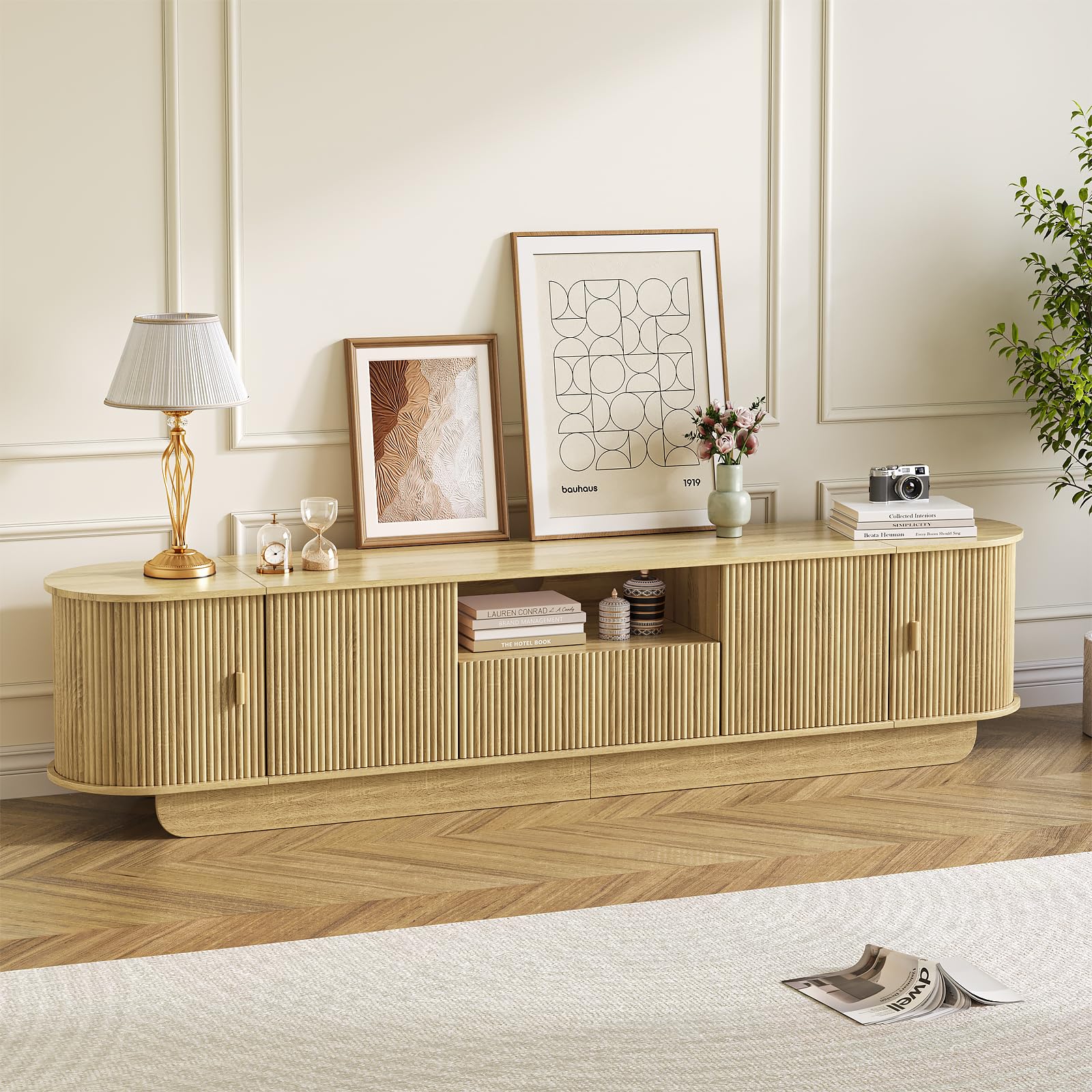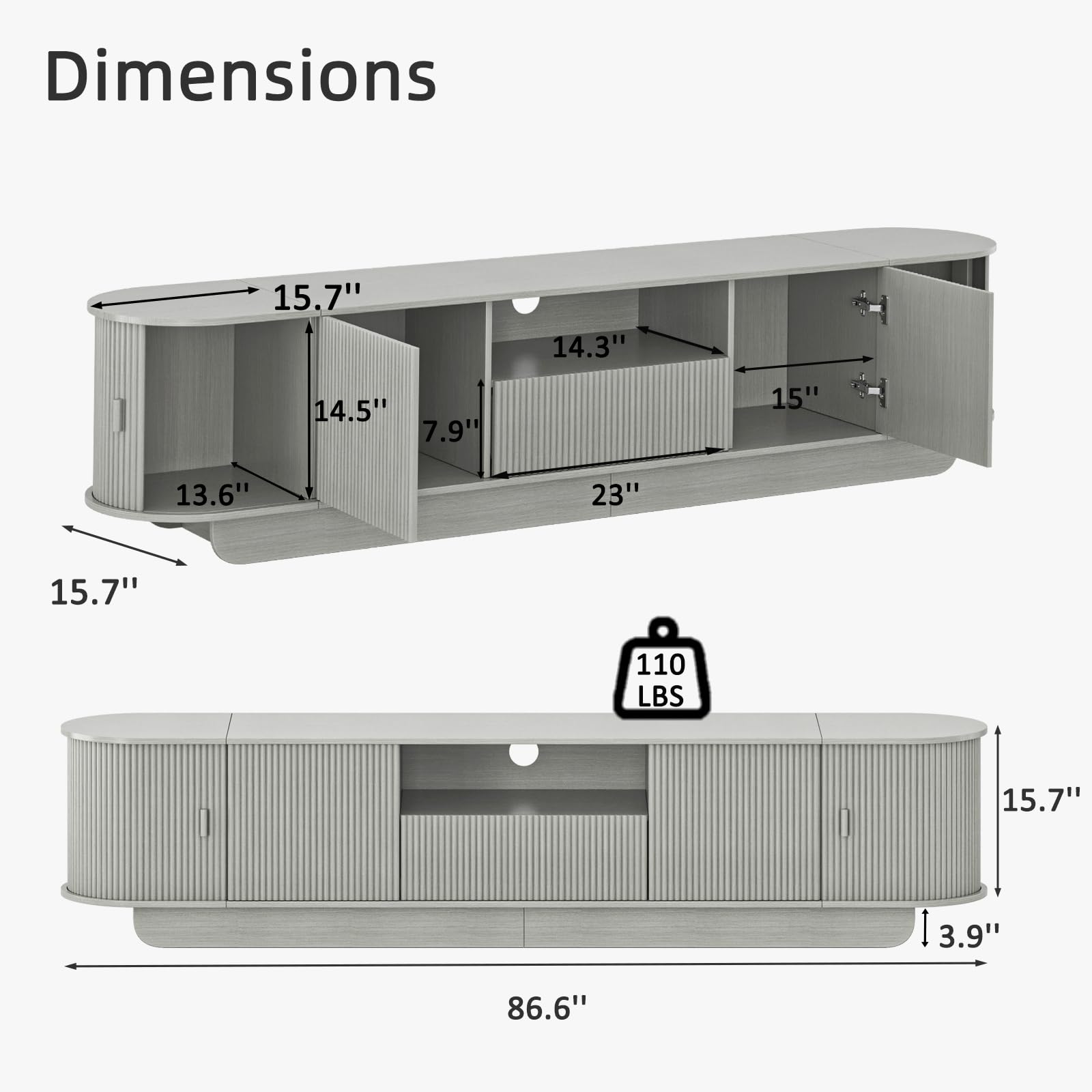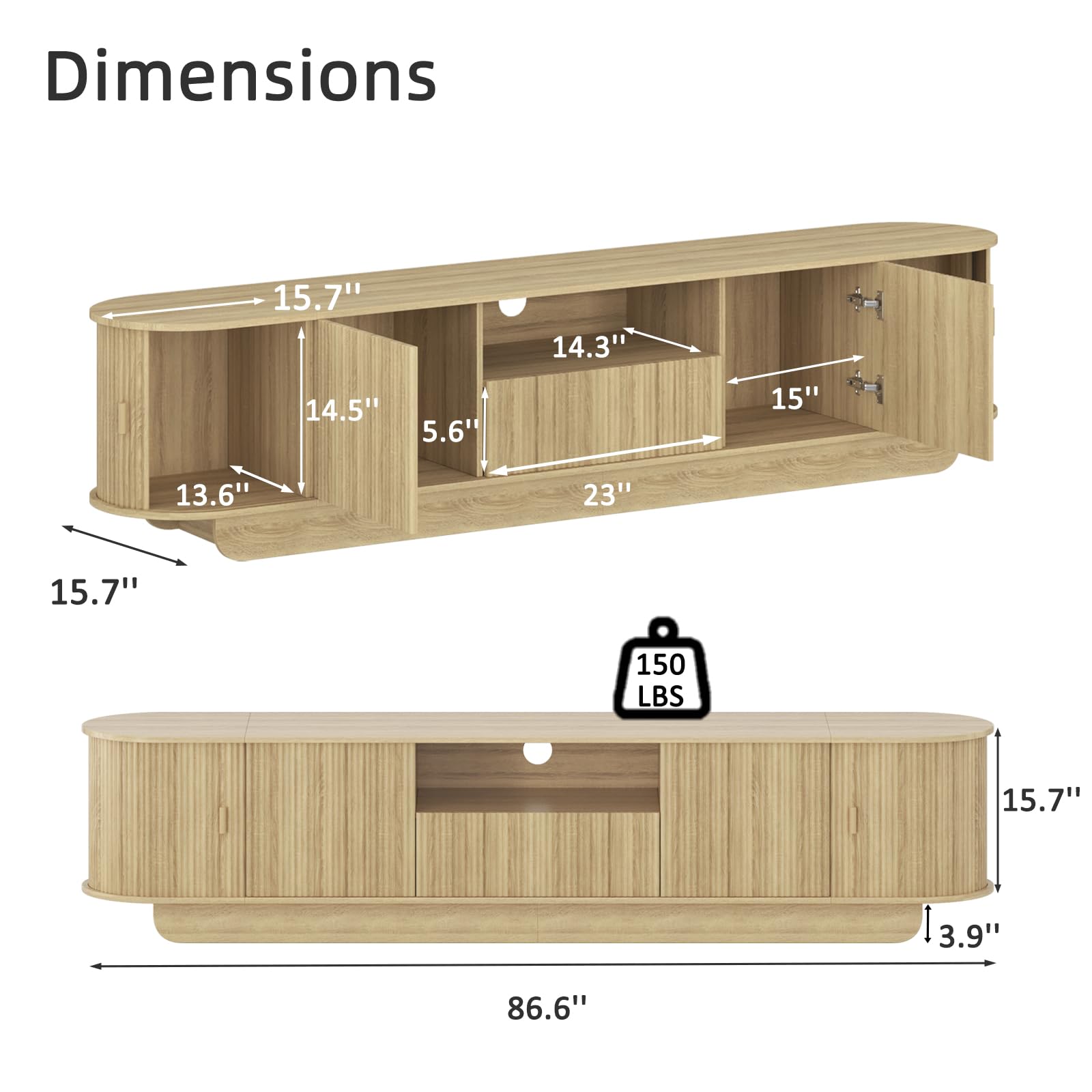 • 【Spacious & Fit for Large TVs】Designed for big screens, tambour TV stand: 86.61" L × 15.75" W × 18" H, comfortably accommodating TVs from 65" to 85". Its expansive surface provides ample space for your entertainment setup, ensure stability without overwhelming your space, while enhancing your living room’s aesthetic.