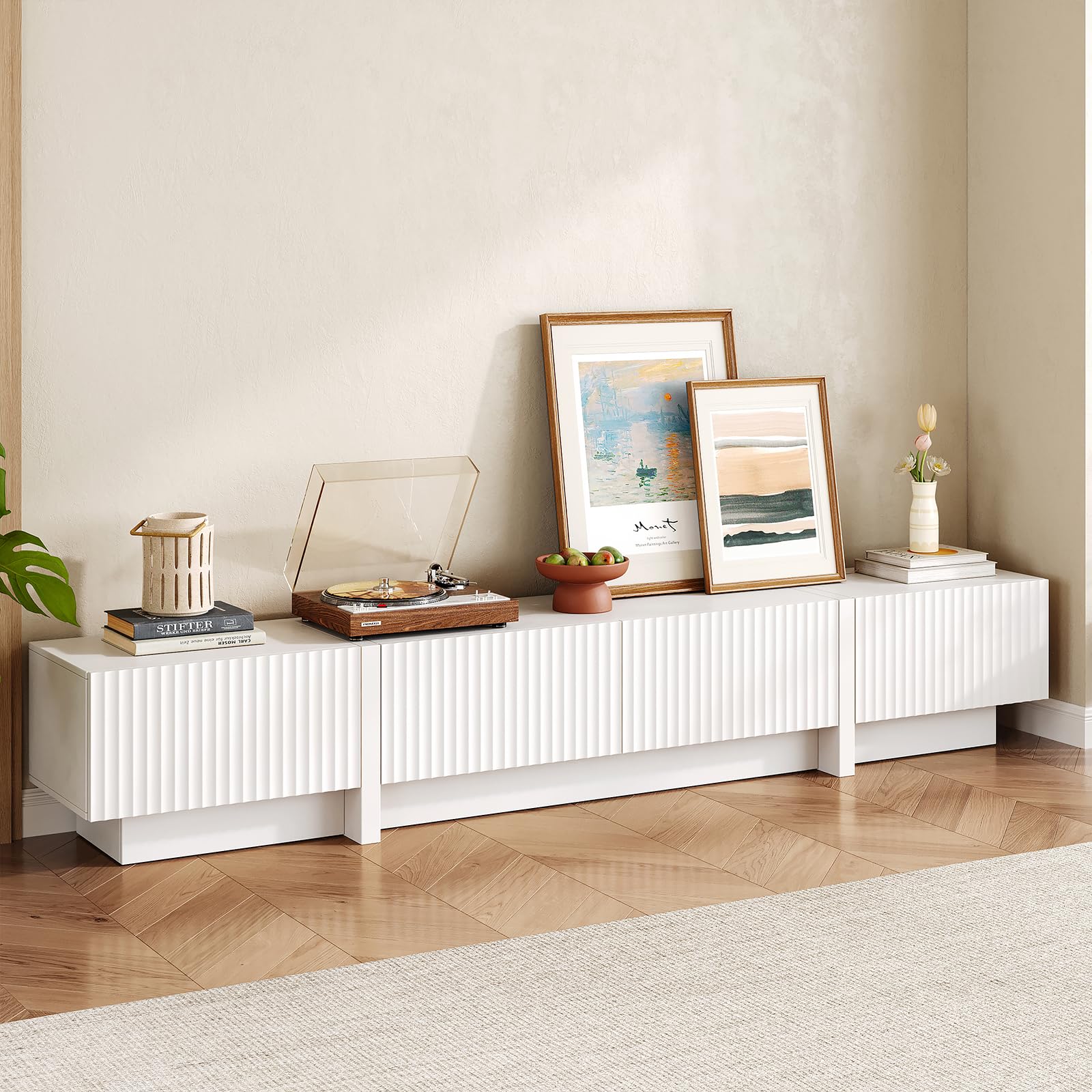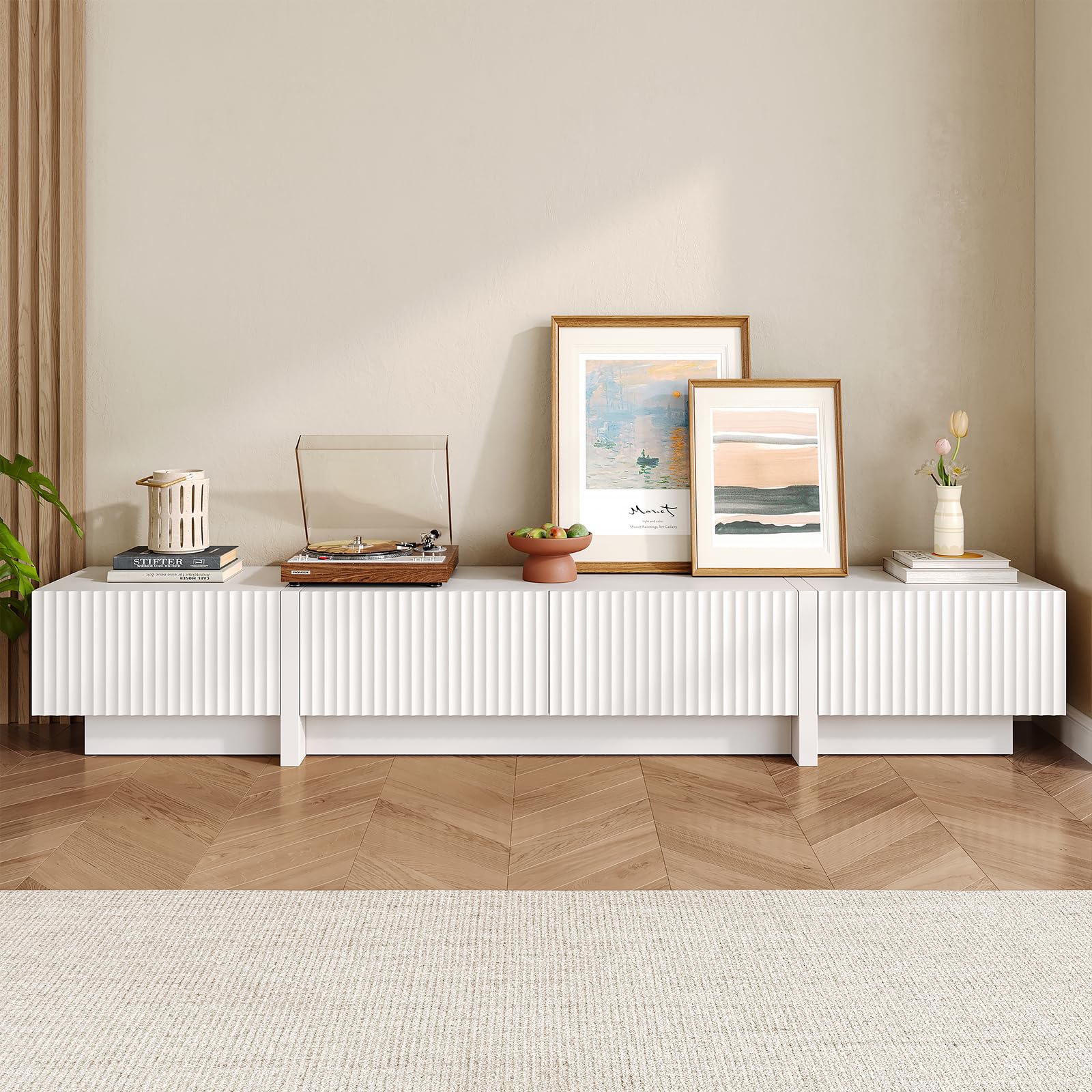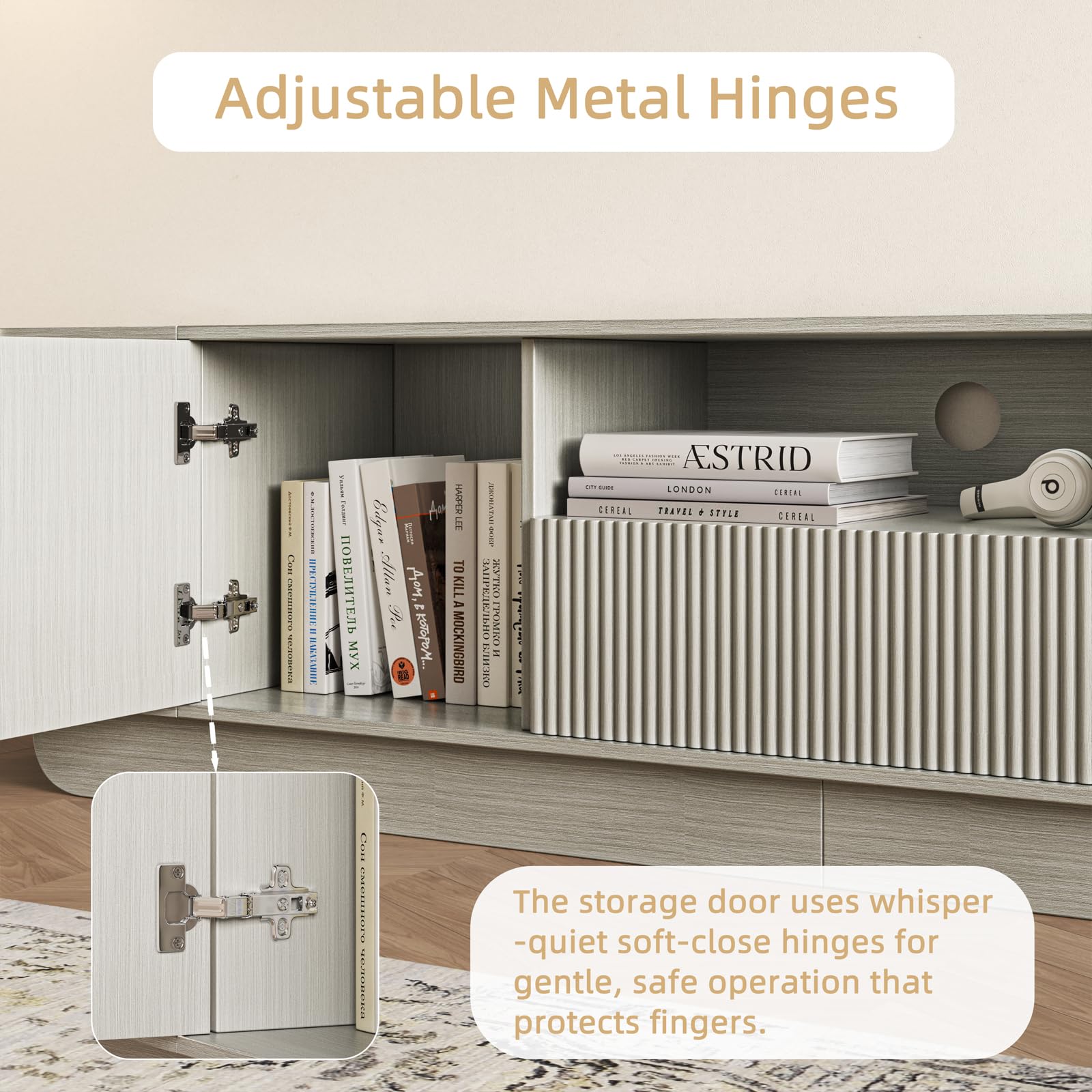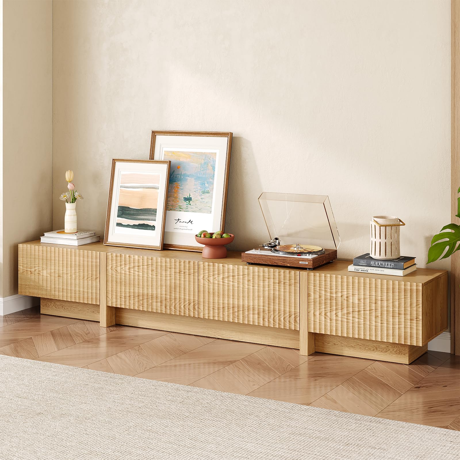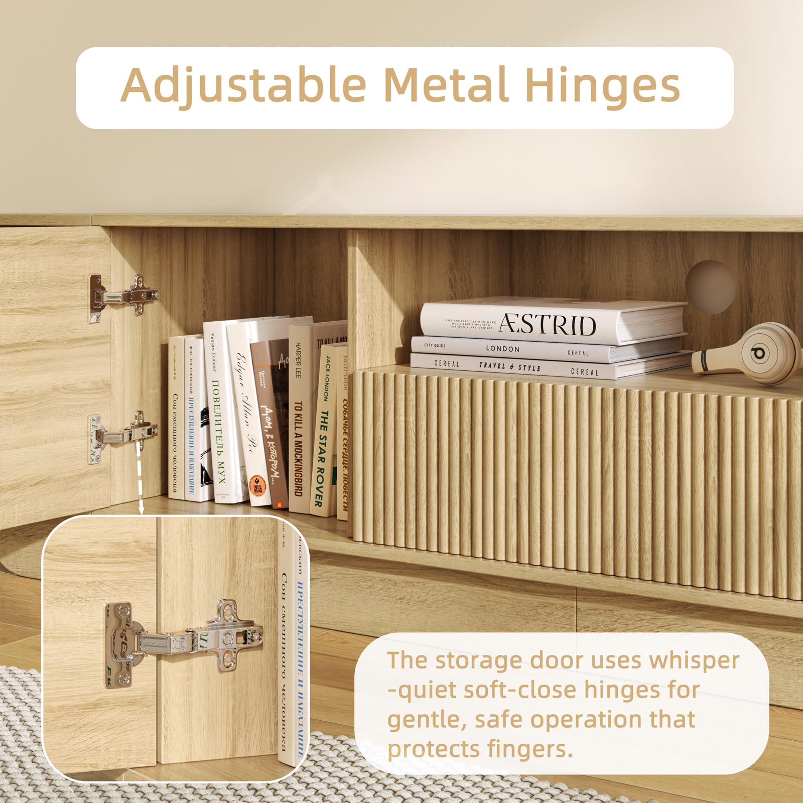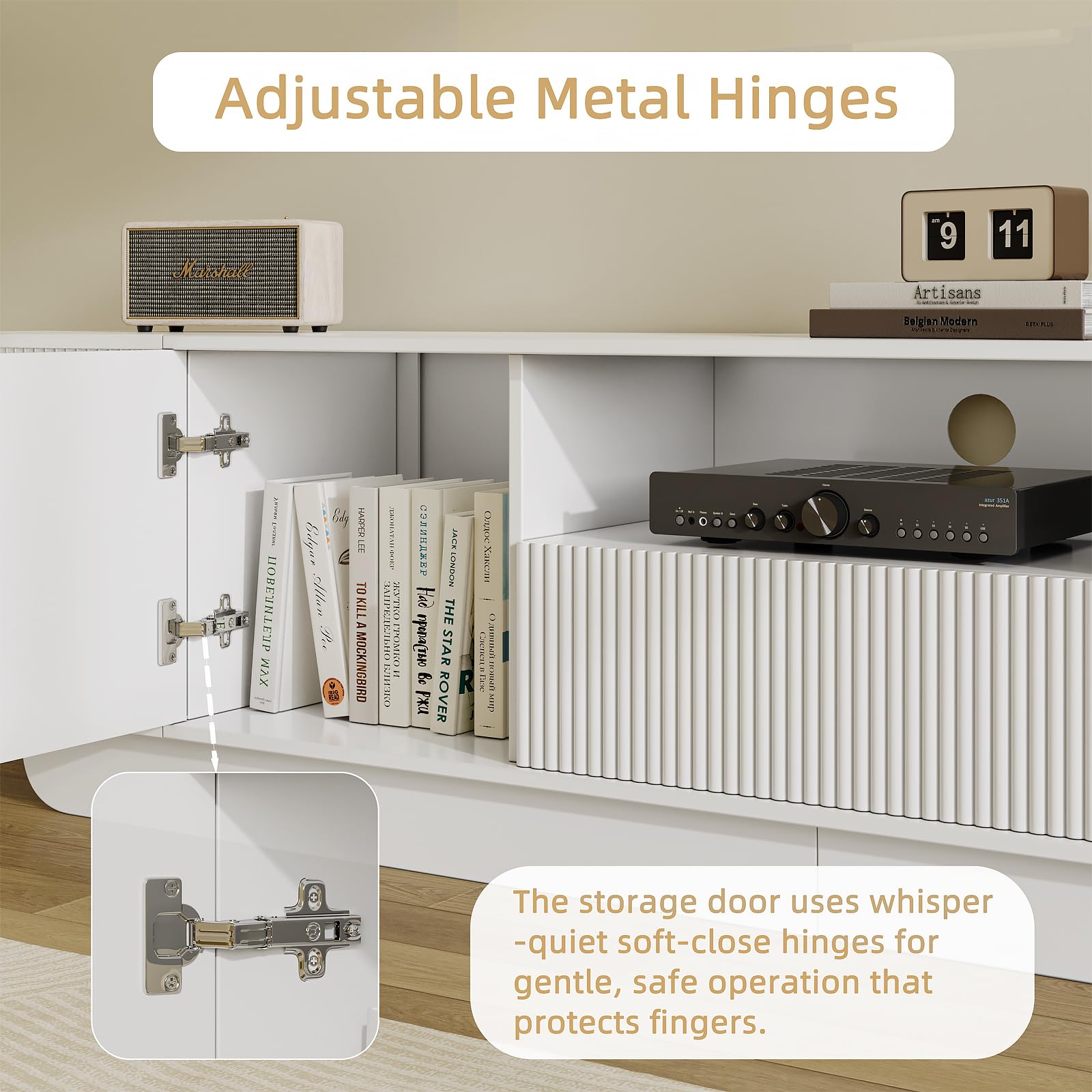 • 【Spacious & Fit for Large TVs】Designed for big screens, tambour TV stand: 86.61" L × 15.75" W × 18" H, comfortably accommodating TVs from 65" to 85". Its expansive surface provides ample space for your entertainment setup, ensure stability without overwhelming your space, while enhancing your living room’s aesthetic.