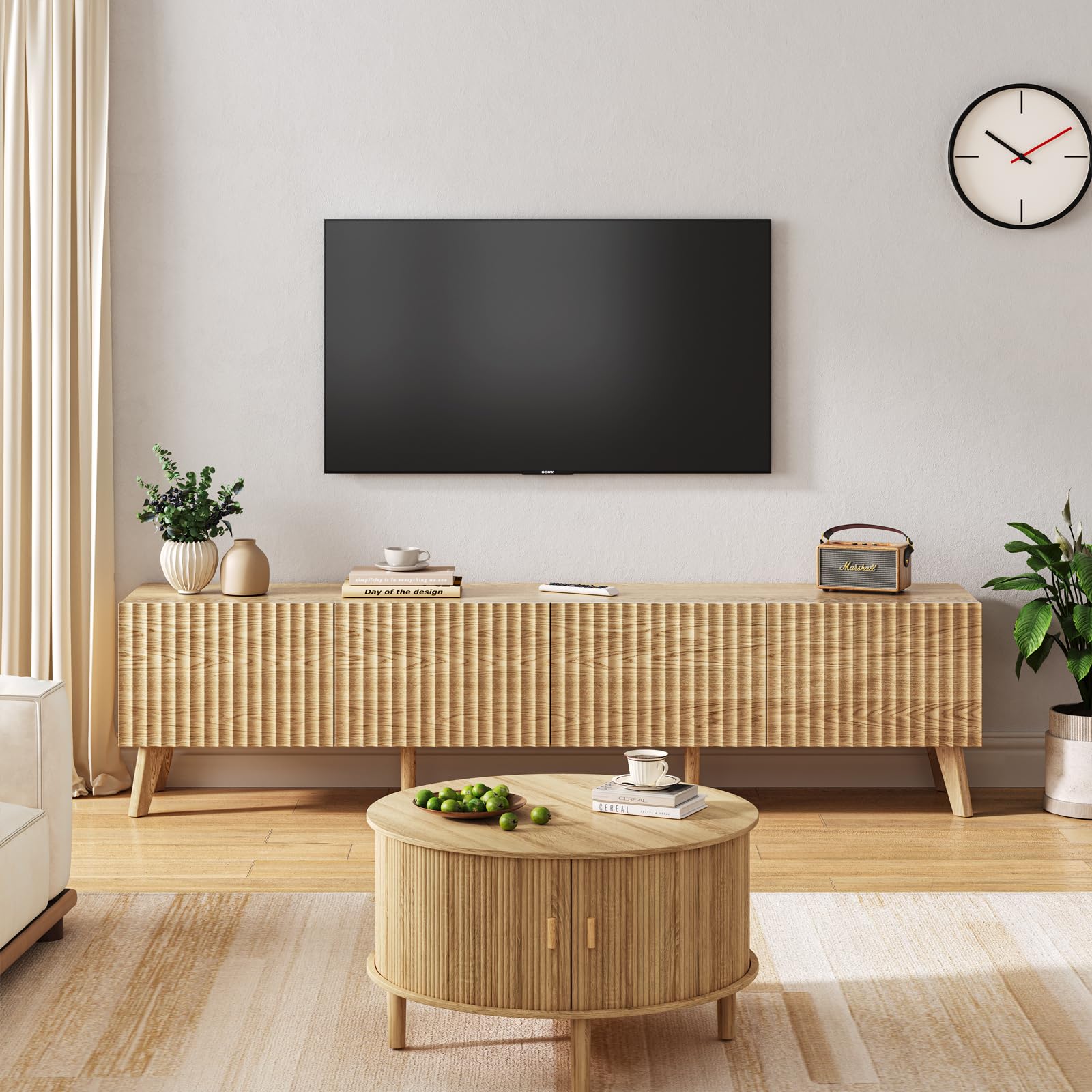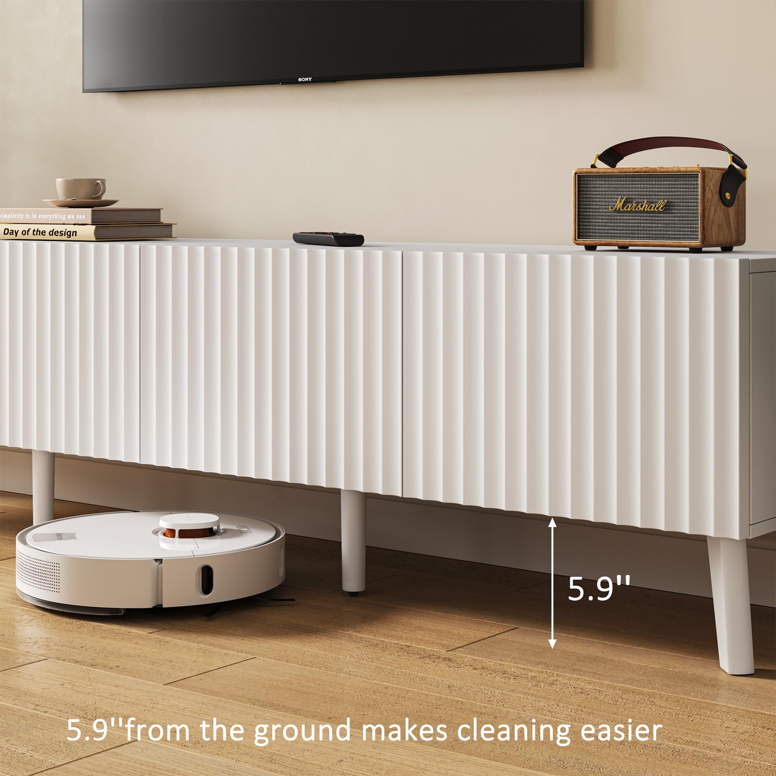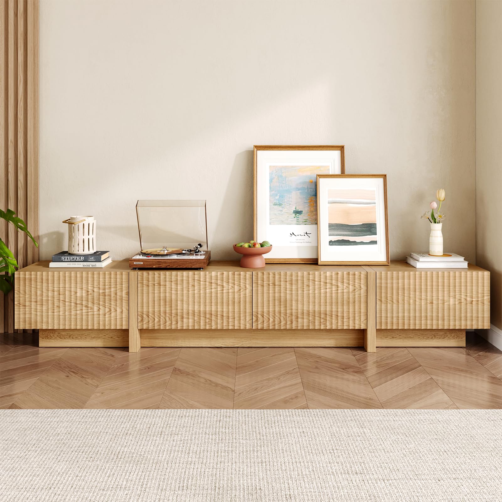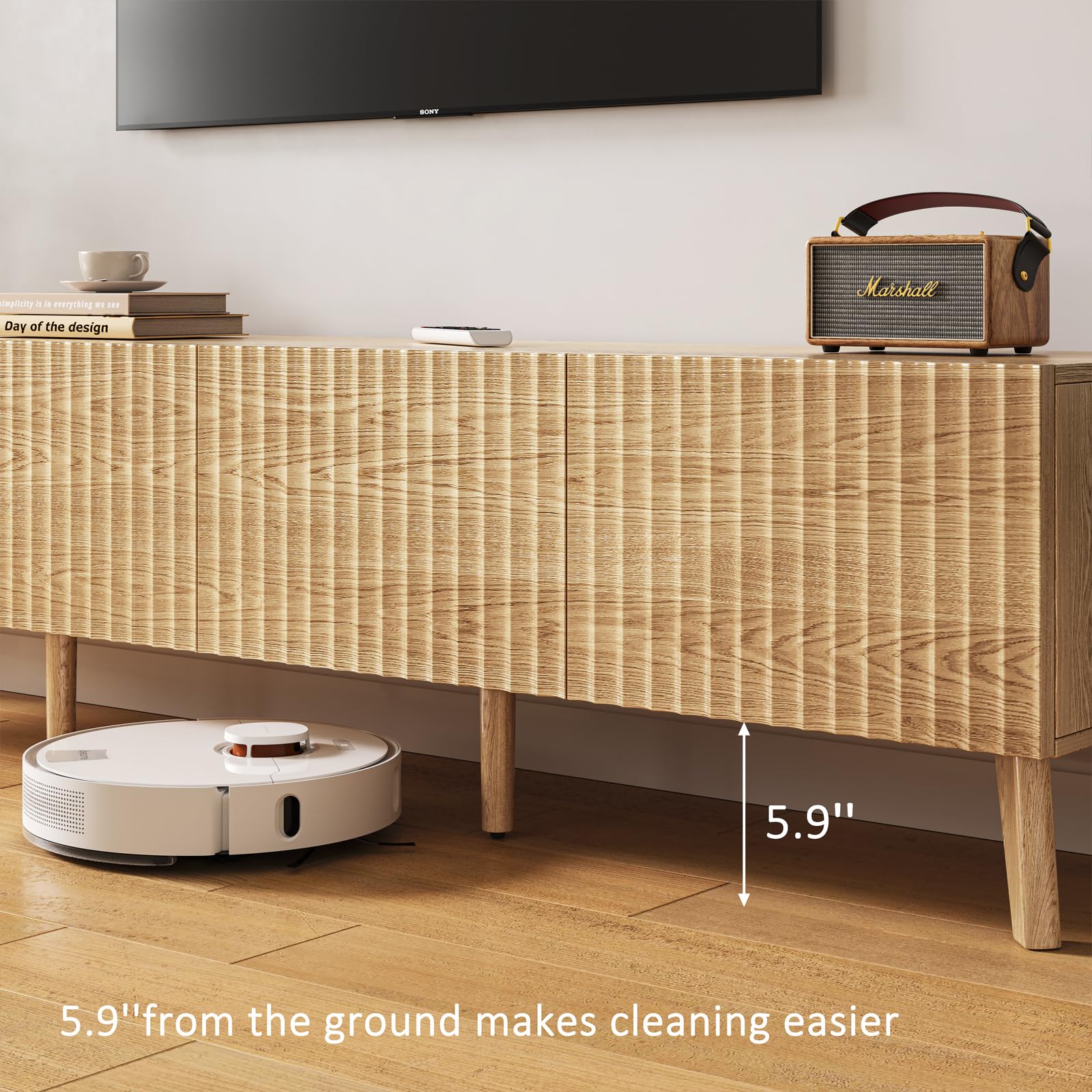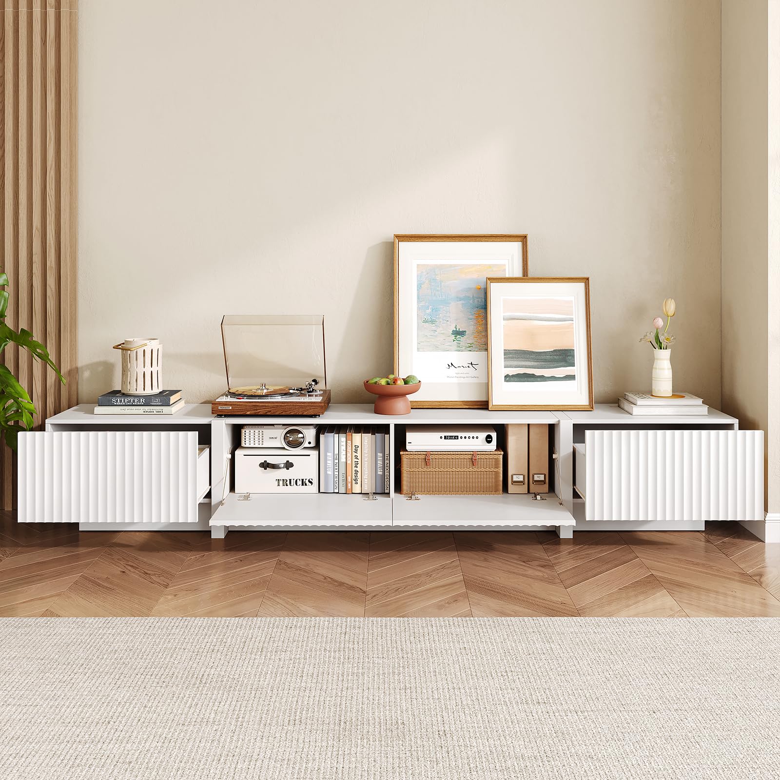 • 【Spacious & Fit for Large TVs】Designed for big screens, tambour TV stand: 86.61" L × 15.75" W × 18" H, comfortably accommodating TVs from 65" to 85". Its expansive surface provides ample space for your entertainment setup, ensure stability without overwhelming your space, while enhancing your living room’s aesthetic.