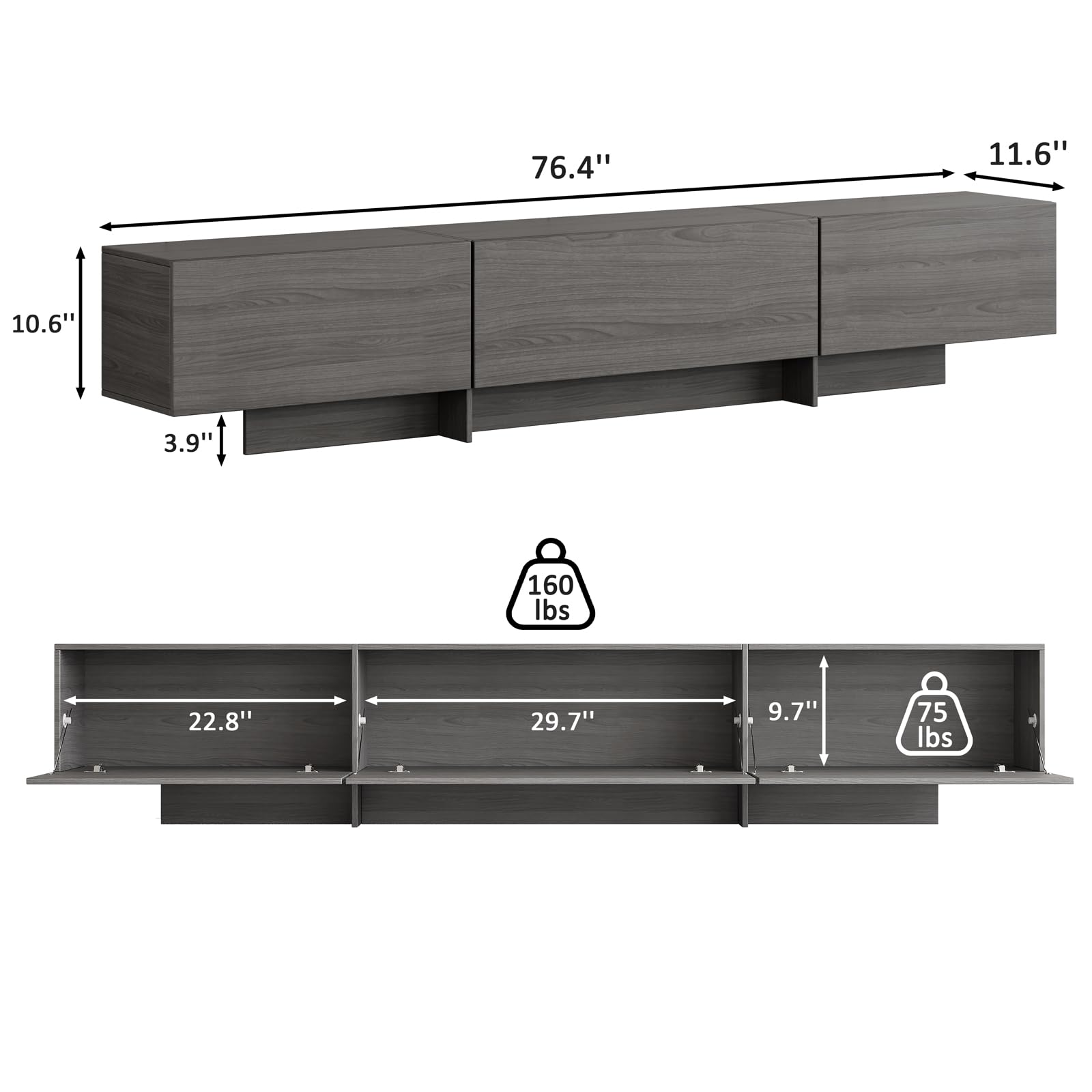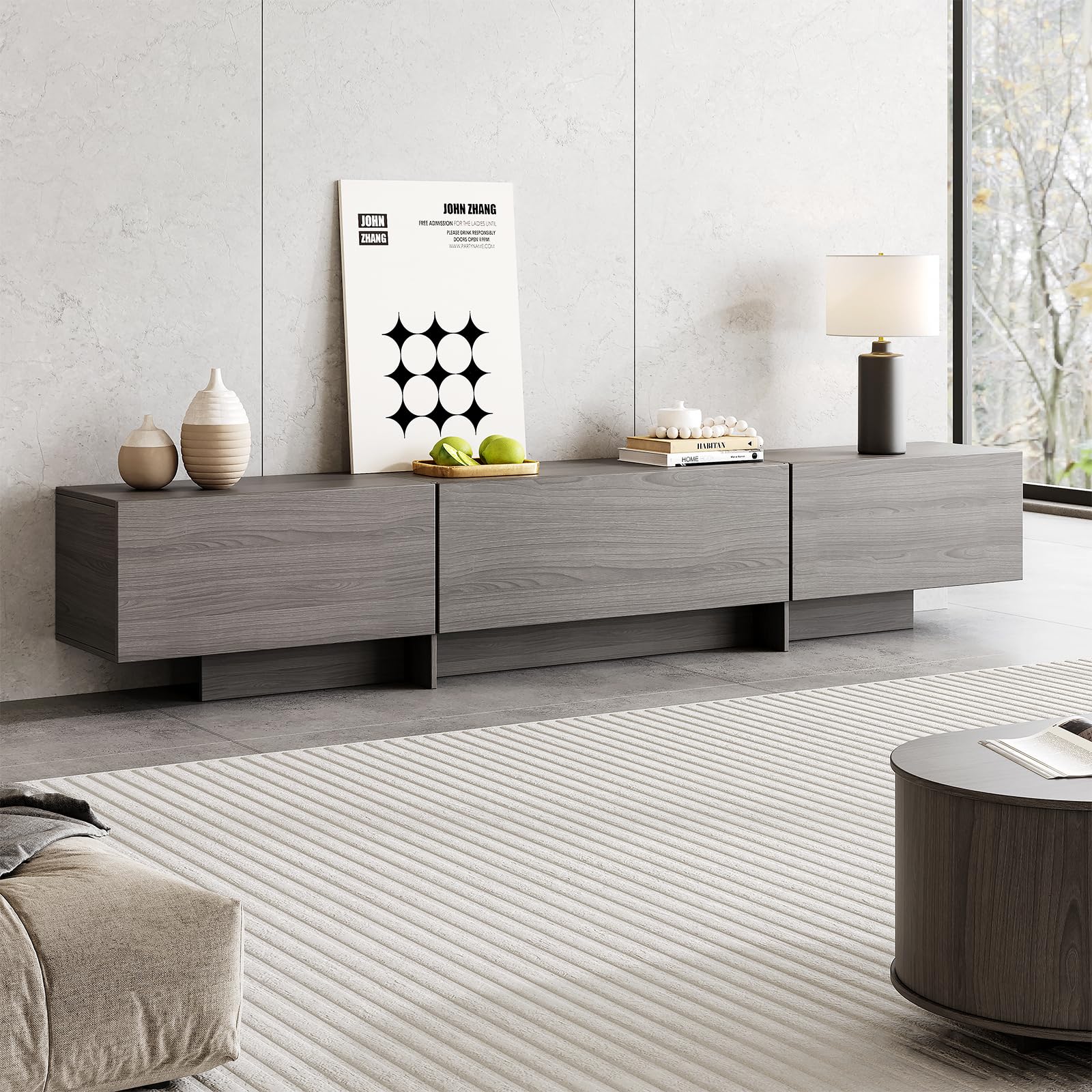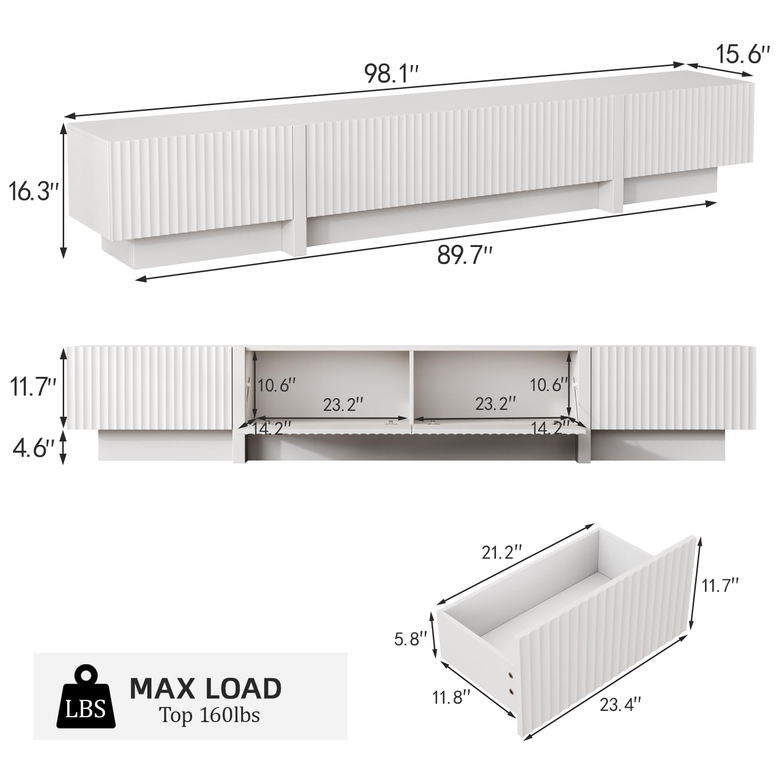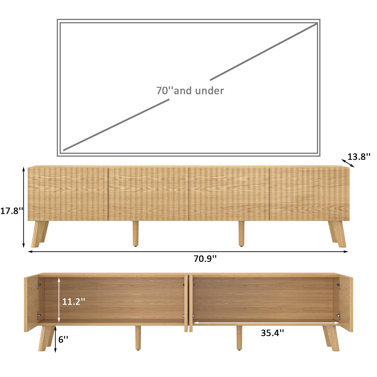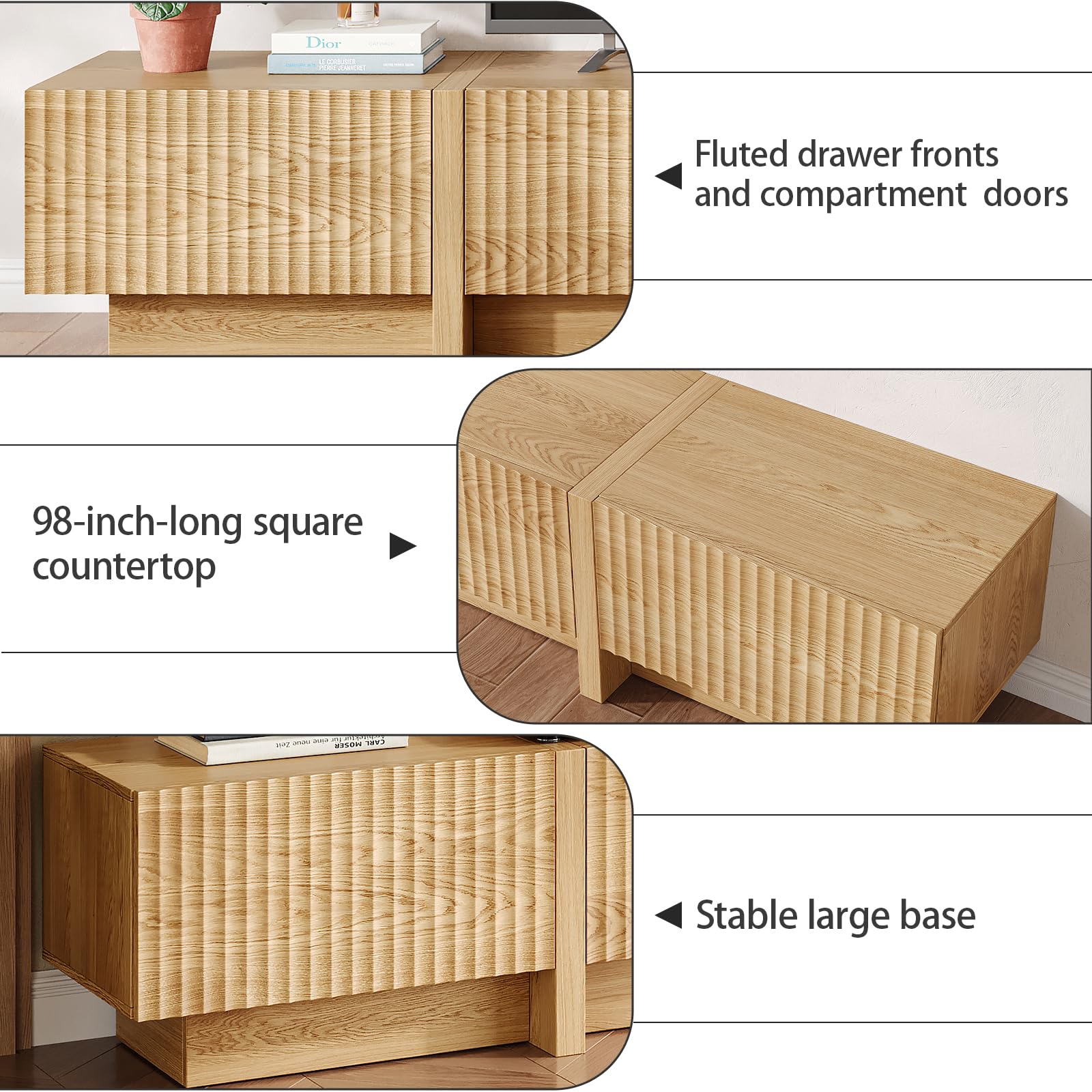 • 【Spacious & Fit for Large TVs】Designed for big screens, tambour TV stand: 86.61" L × 15.75" W × 18" H, comfortably accommodating TVs from 65" to 85". Its expansive surface provides ample space for your entertainment setup, ensure stability without overwhelming your space, while enhancing your living room’s aesthetic.