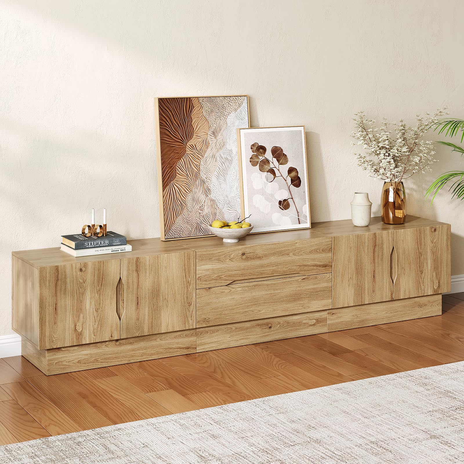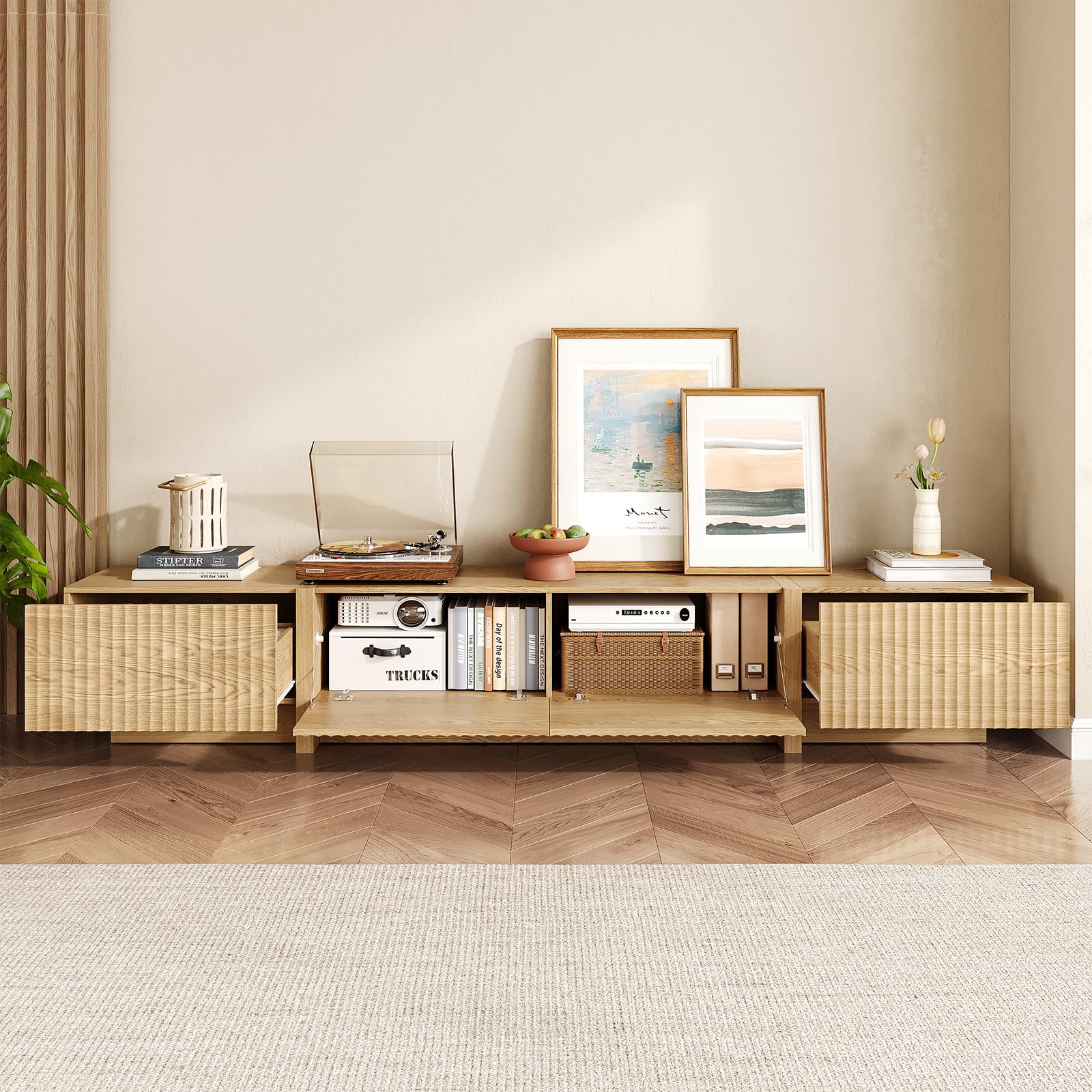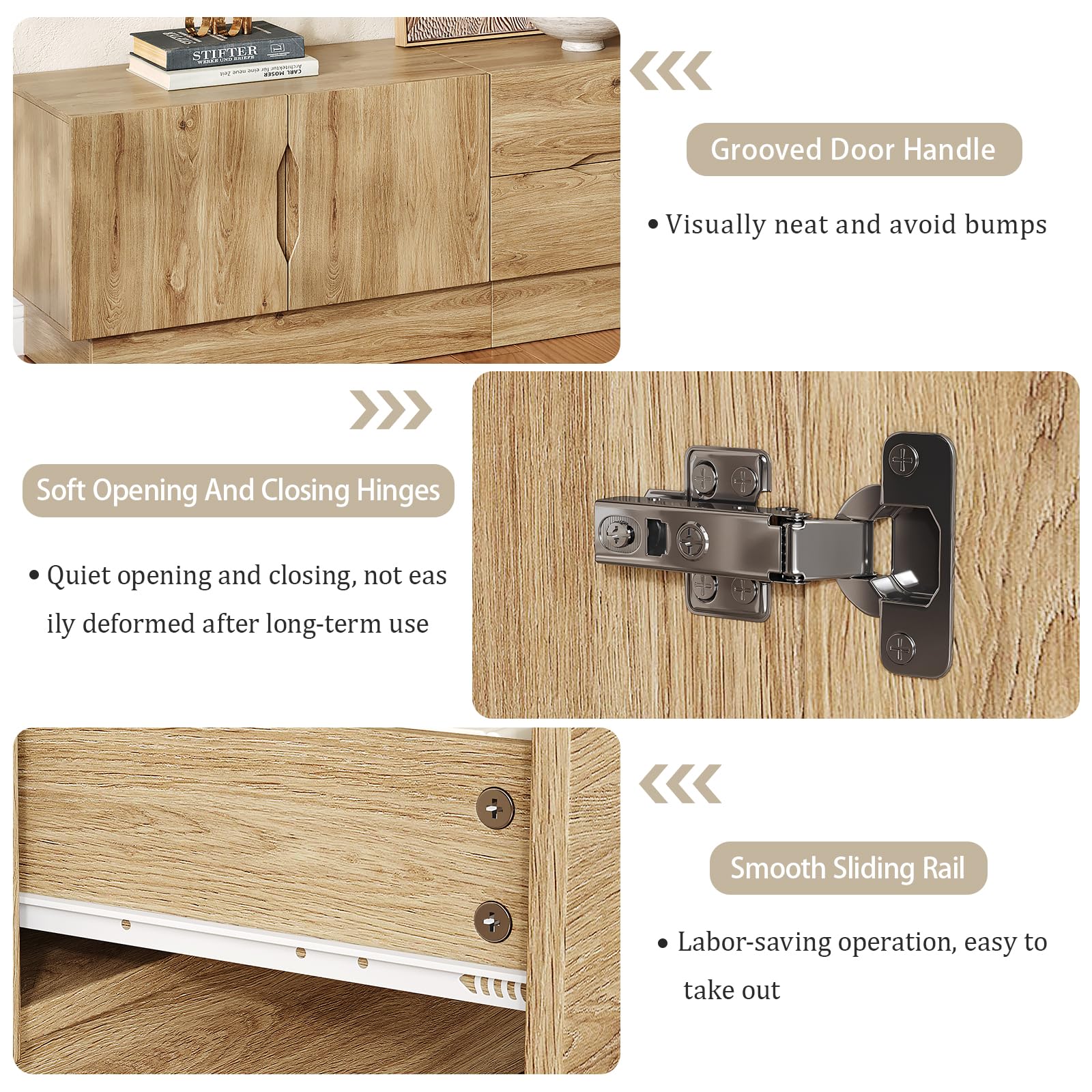 • 【Larger Storage Capacity】Stay organized with open shelving for quick-access items and 4 deep, soft-closing drawers with sturdy hinges, offering generous storage for media devices, gaming consoles, books, and more. The TV console features clever layout keeps essentials within reach yet neatly tucked away.