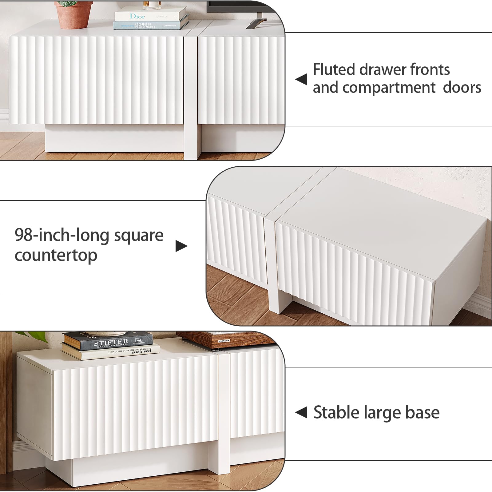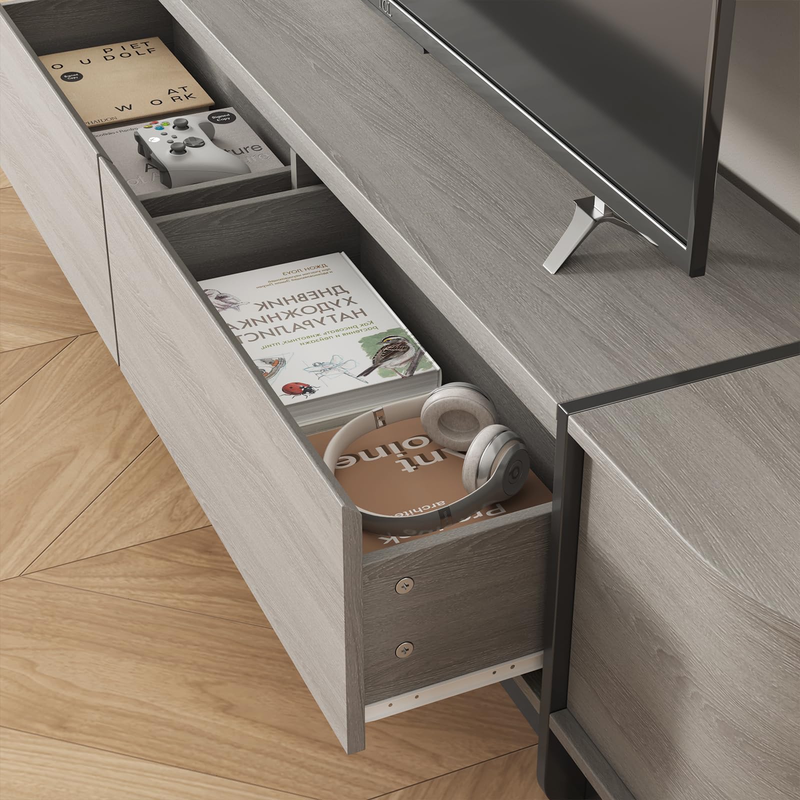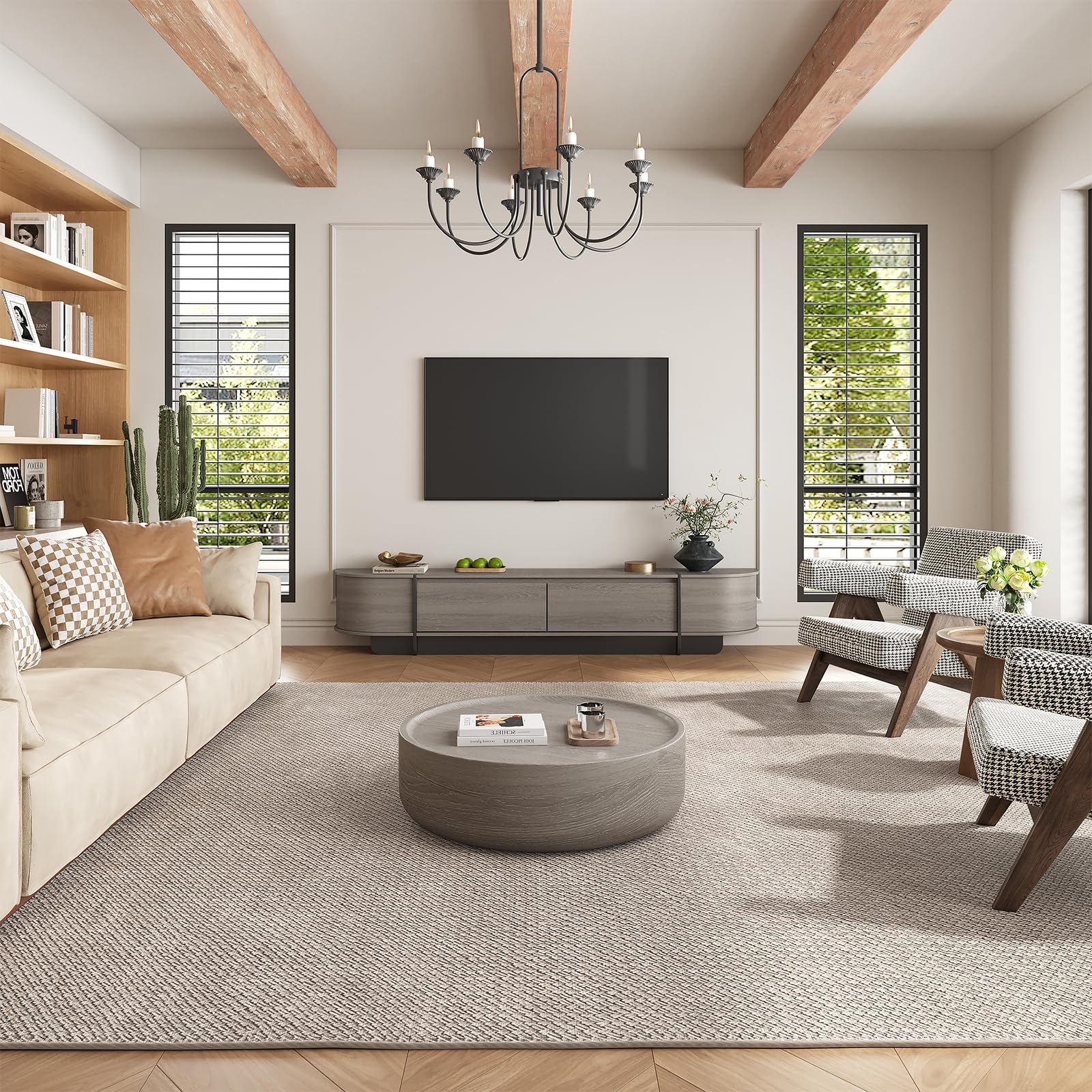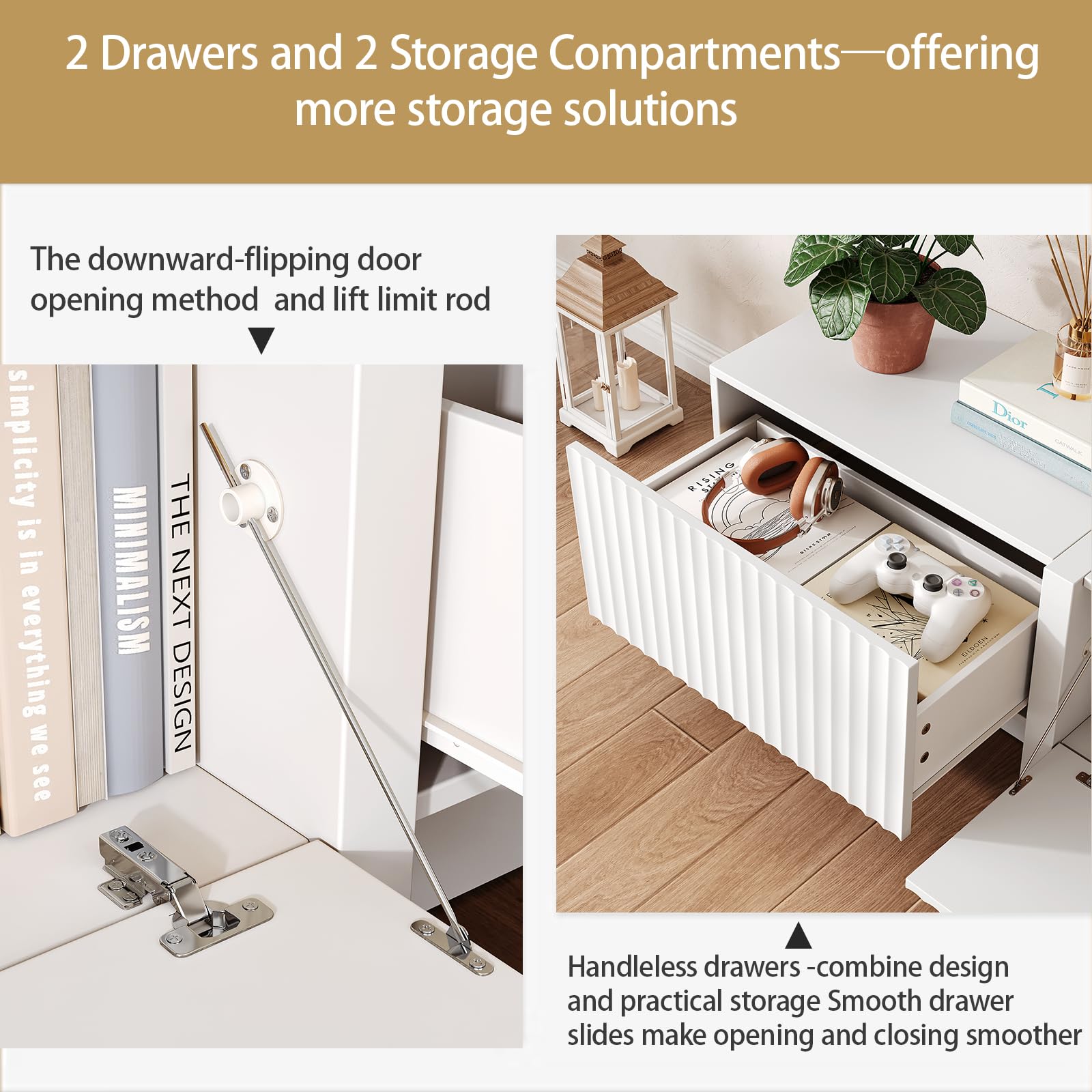 • 【Larger Storage Capacity】Stay organized with open shelving for quick-access items and 4 deep, soft-closing drawers with sturdy hinges, offering generous storage for media devices, gaming consoles, books, and more. The TV console features clever layout keeps essentials within reach yet neatly tucked away.