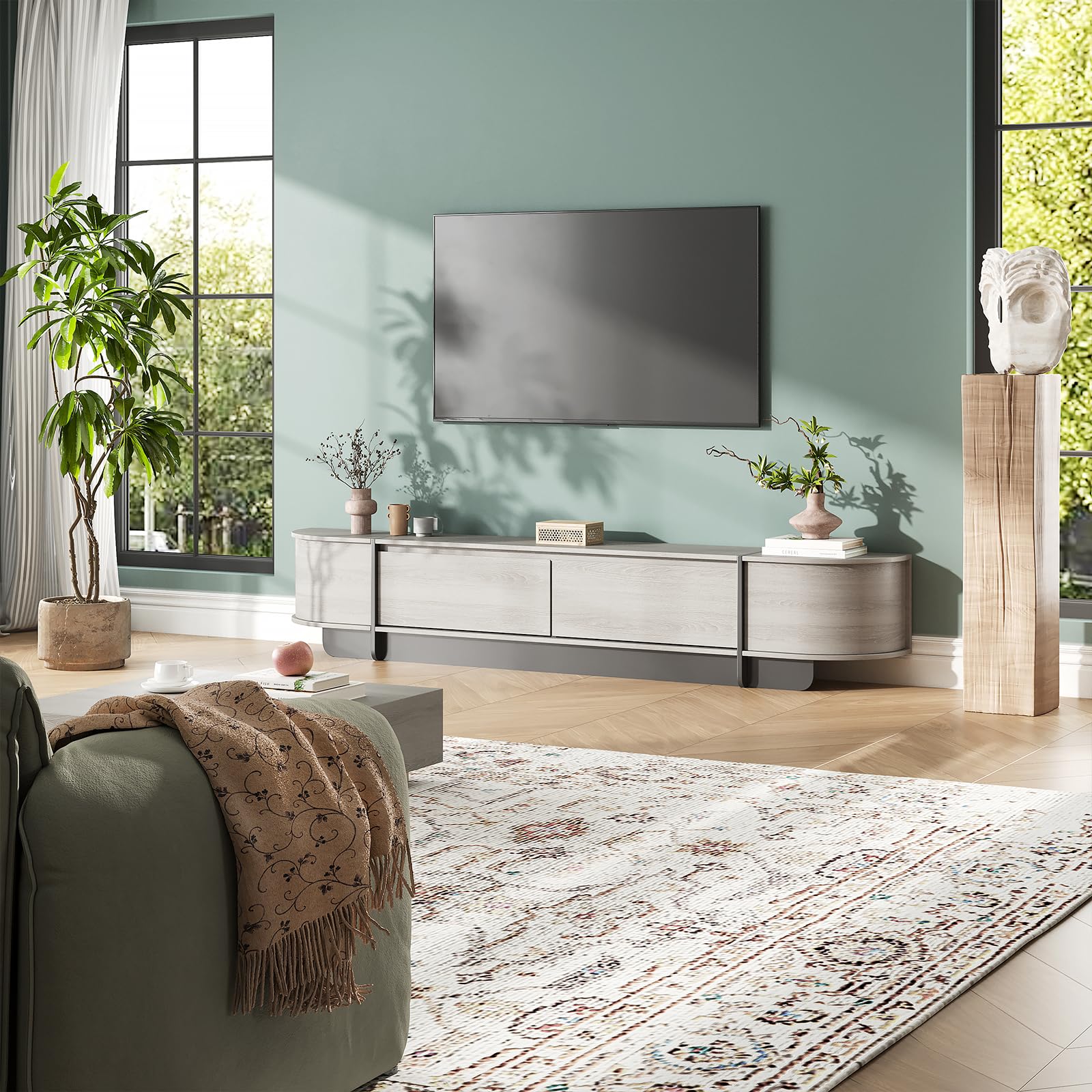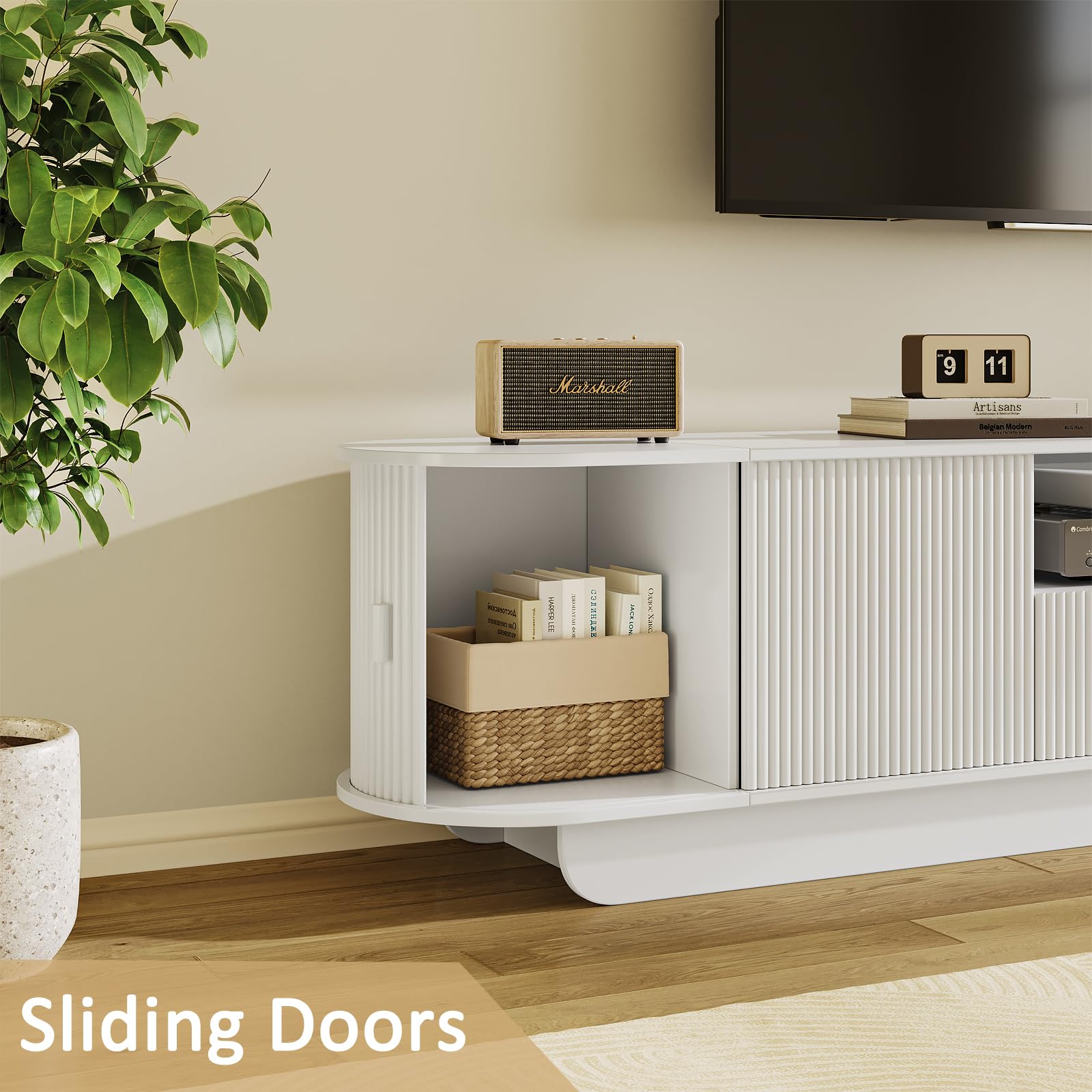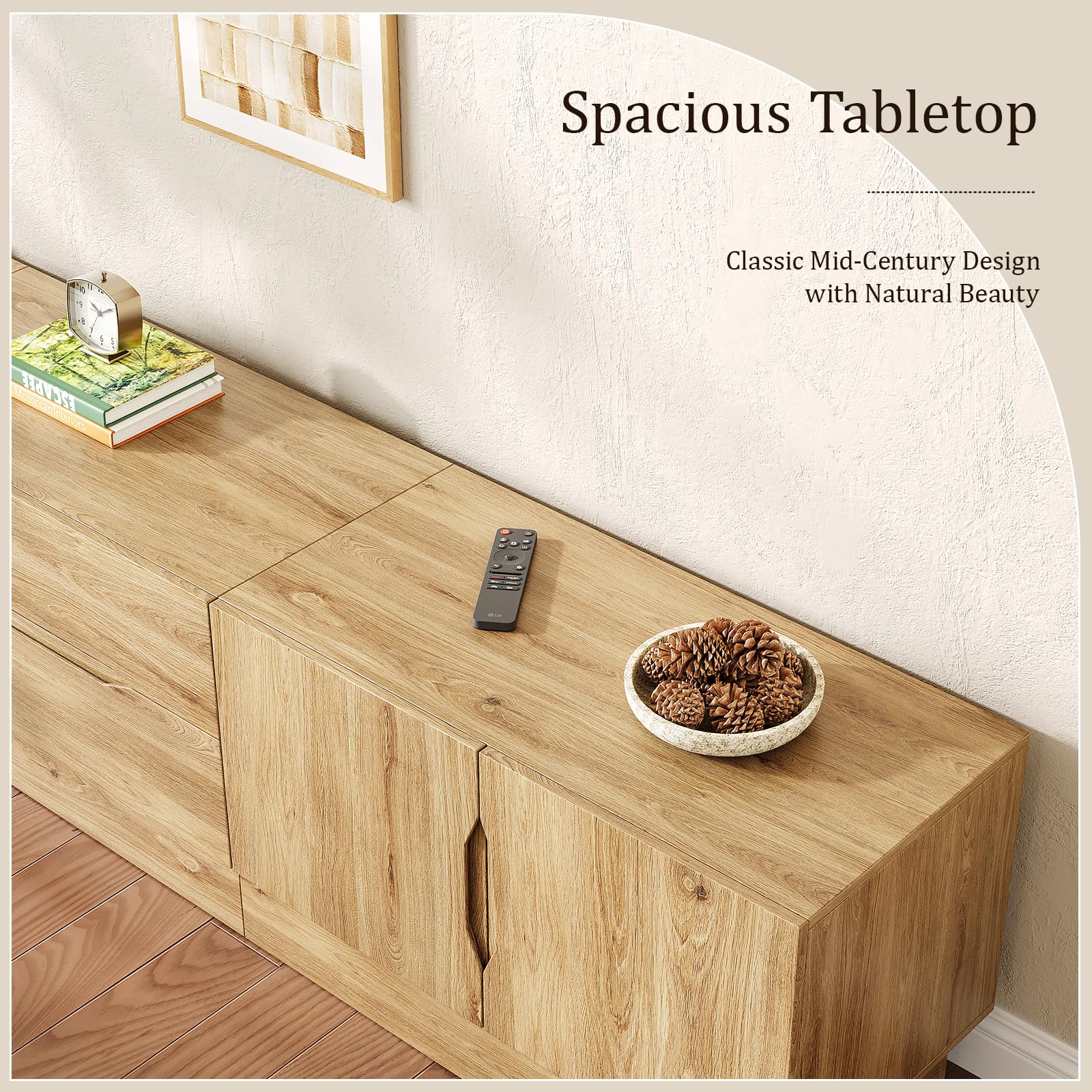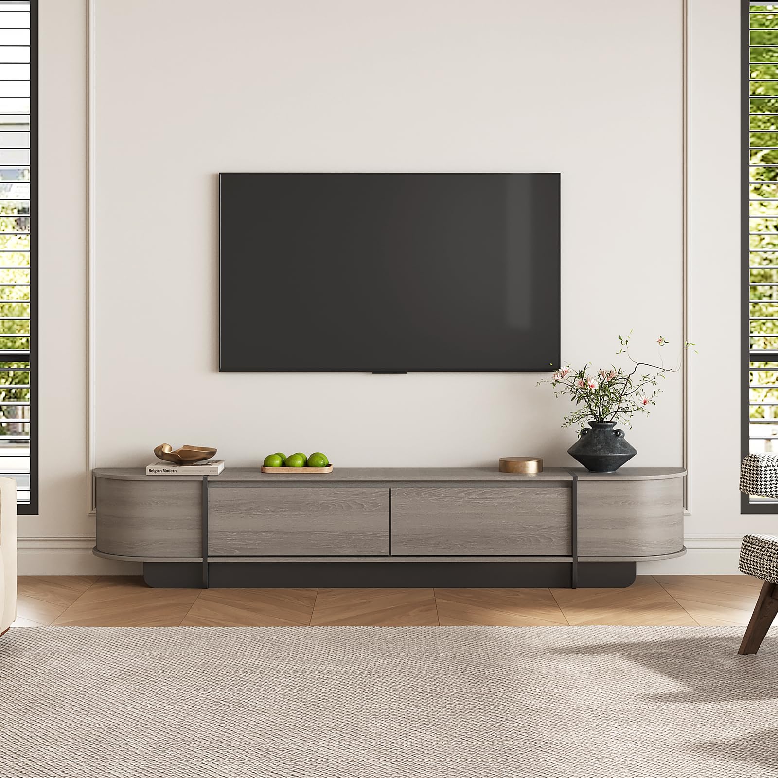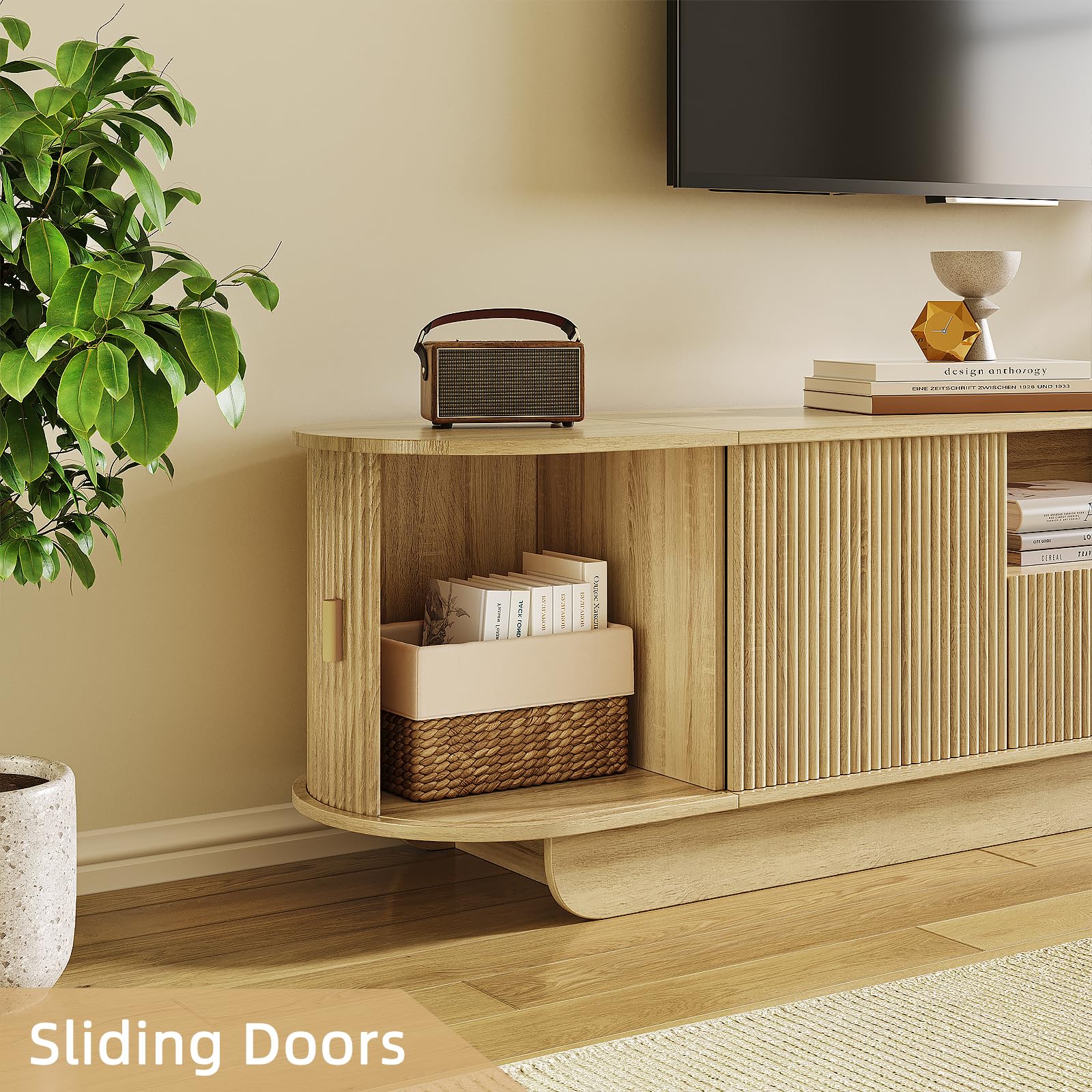 • 【Sliding Door & Curved Edge】Features a modern sliding door with rounded corners, mid century entertainment center prevents pointed bumps and 2 sliding doorswith glide mechanism and elegantly rounded edges—combining effortless functionality with a chic, space-saving design that complements any decor.