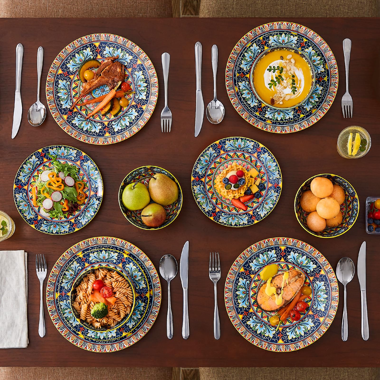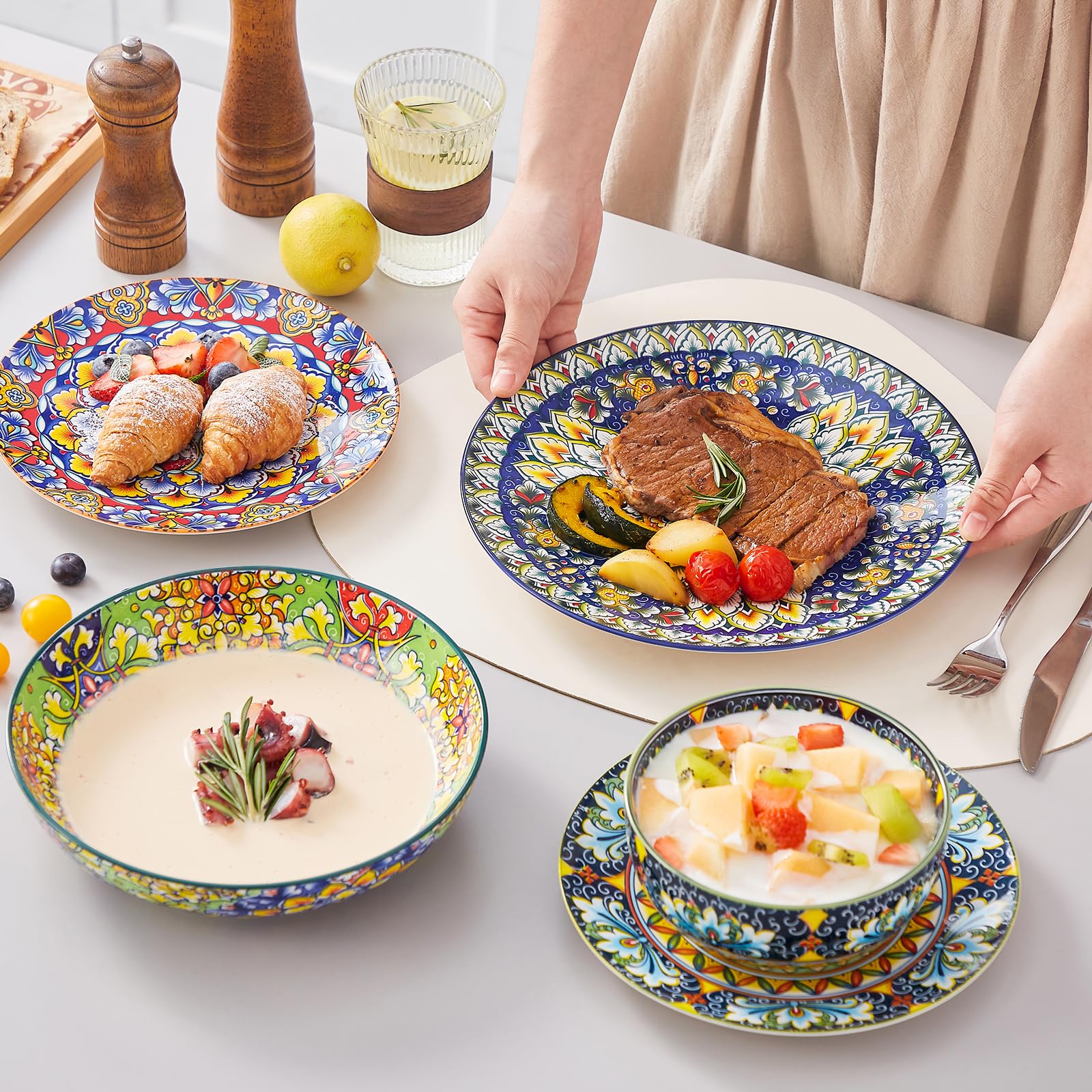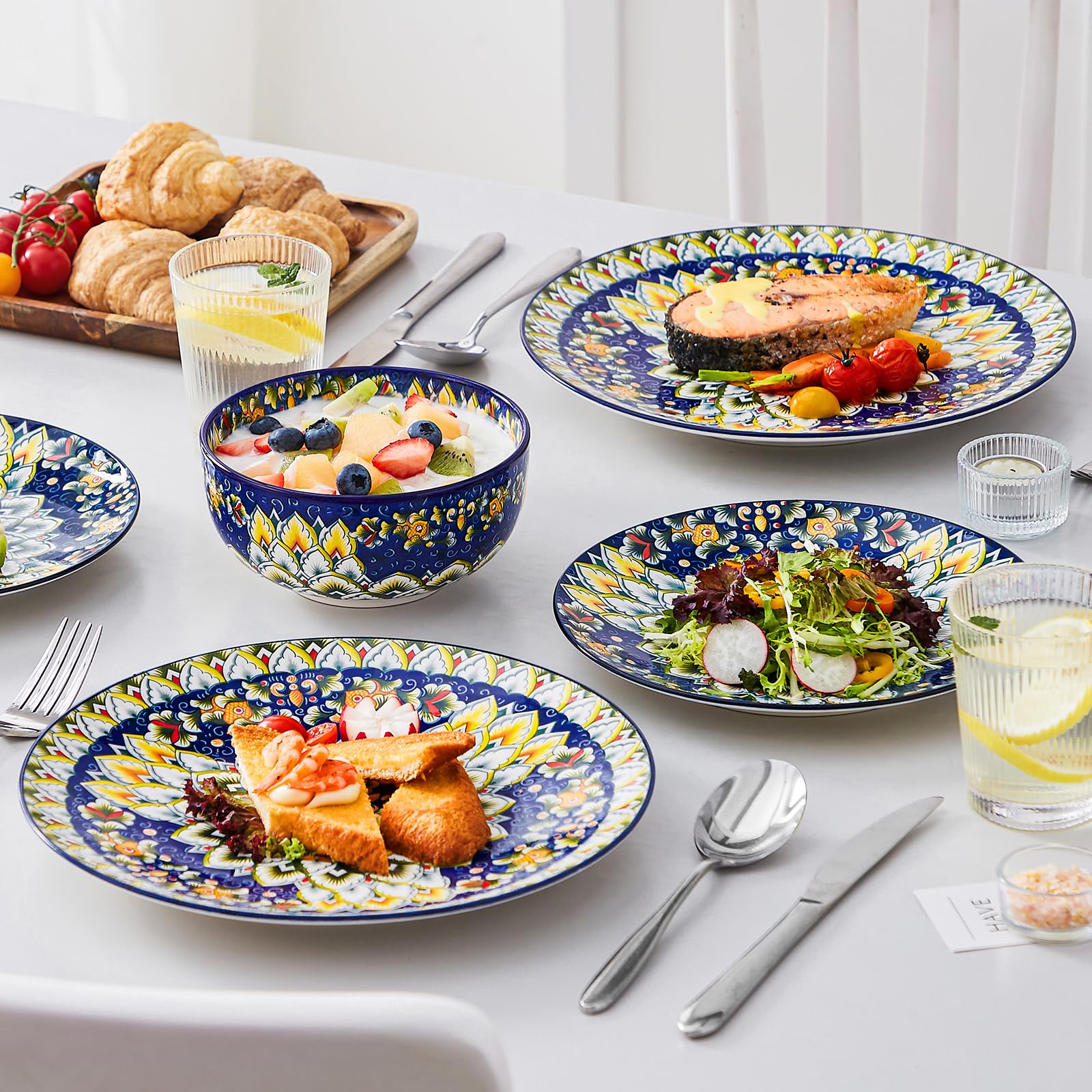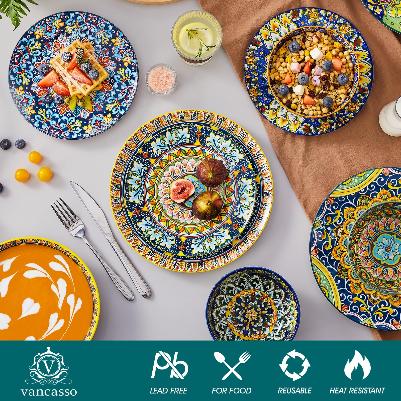 • 【Vibrant and Colorful Designs】vancasso bohemian style dishes set for 6 boast enchanting and intricate designs that capture the free-spirited essence of Bohemian culture. The lively colors and artistic patterns evoke a sense of joy and positivity, enhancing your dining experience with a burst of energy and happiness.