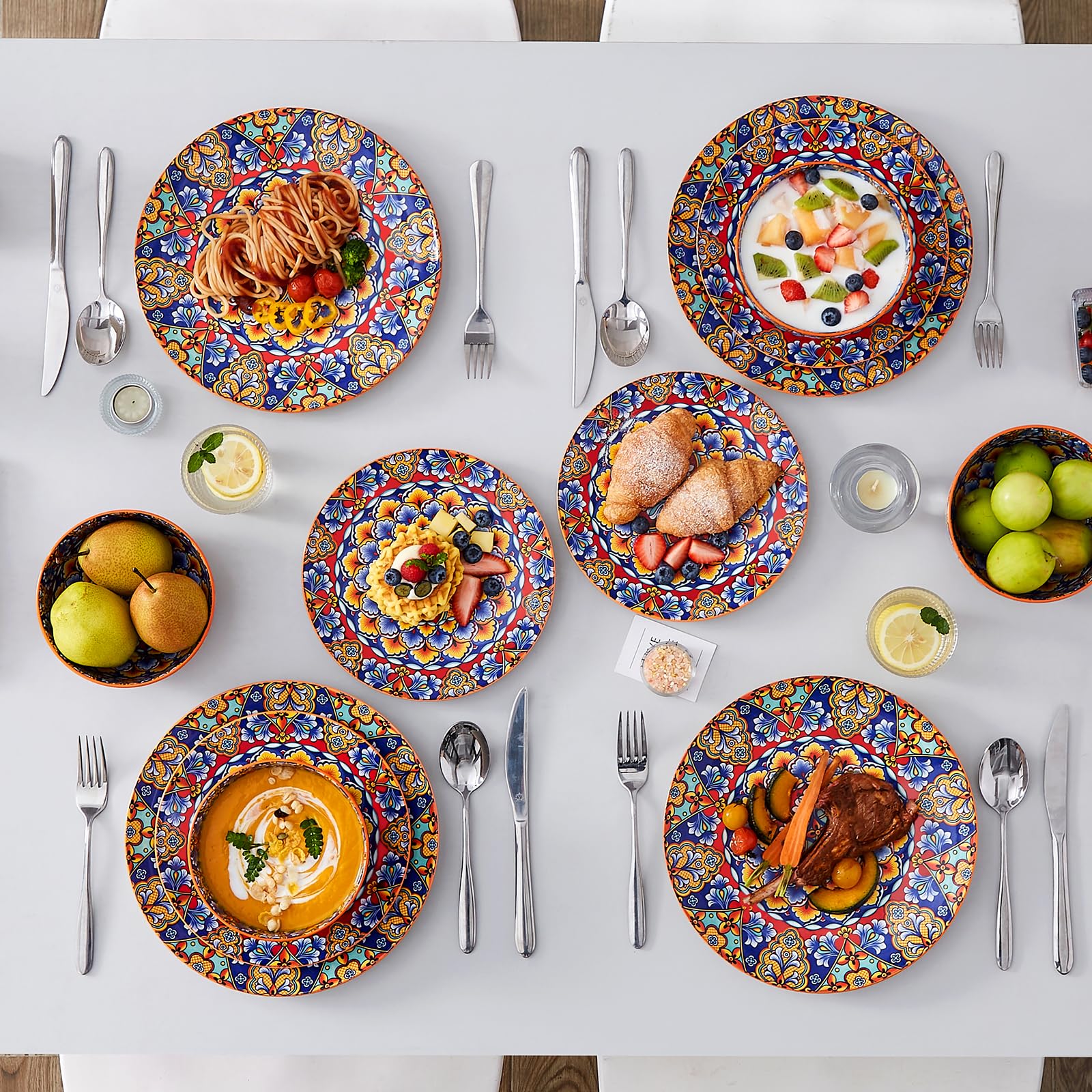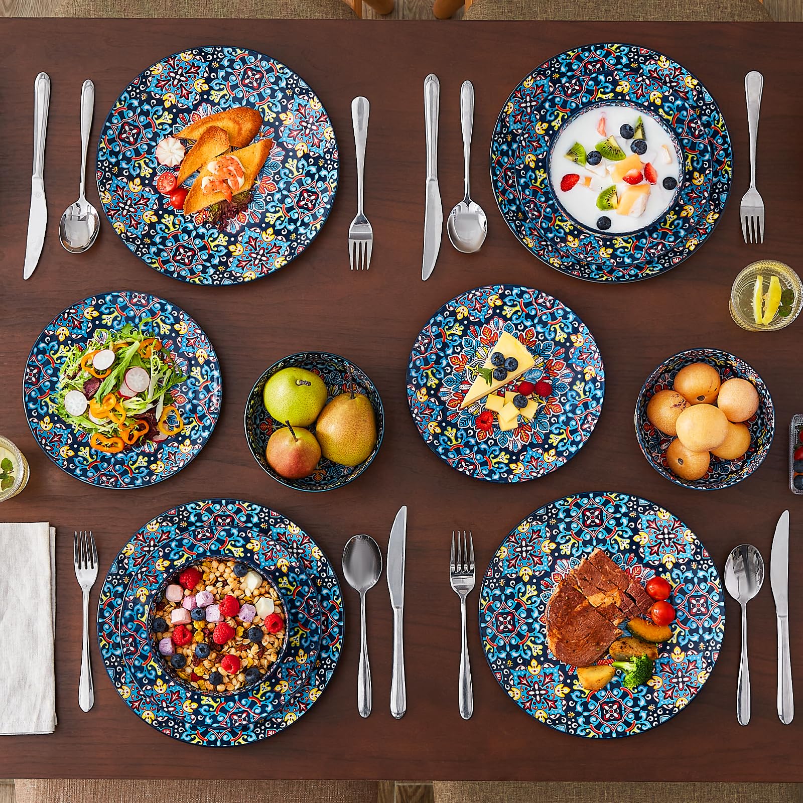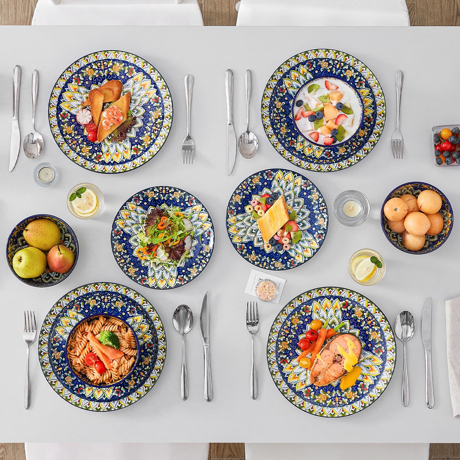 • 【Vibrant and Colorful Designs】vancasso bohemian style dishes set for 6 boast enchanting and intricate designs that capture the free-spirited essence of Bohemian culture. The lively colors and artistic patterns evoke a sense of joy and positivity, enhancing your dining experience with a burst of energy and happiness.