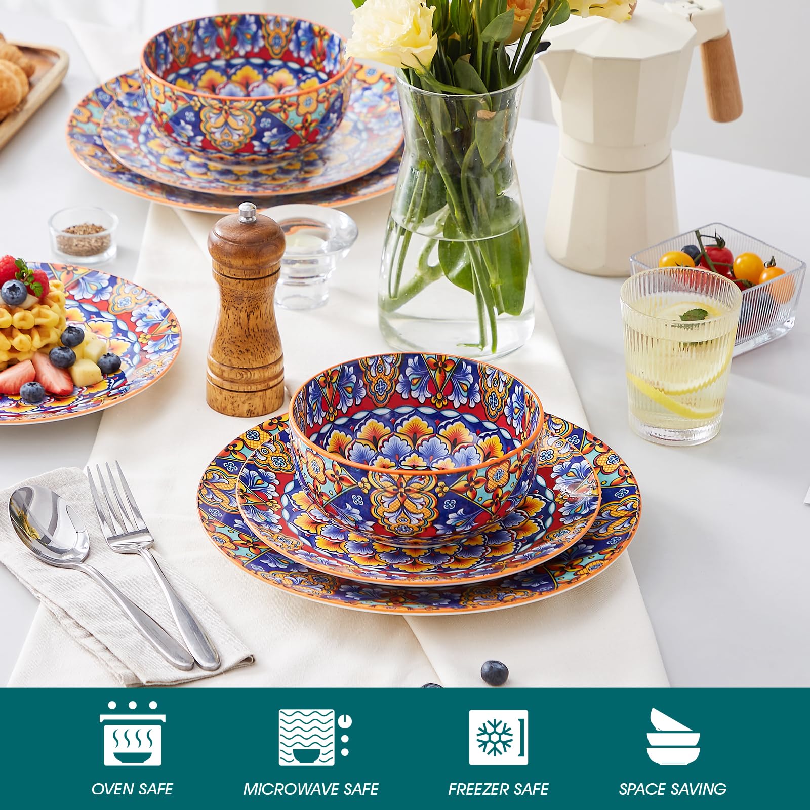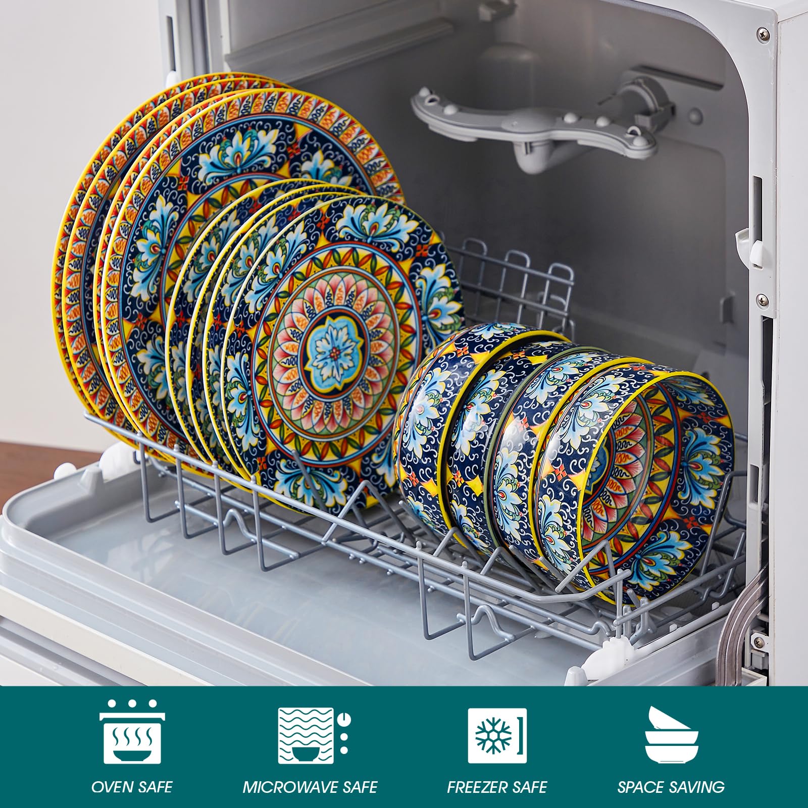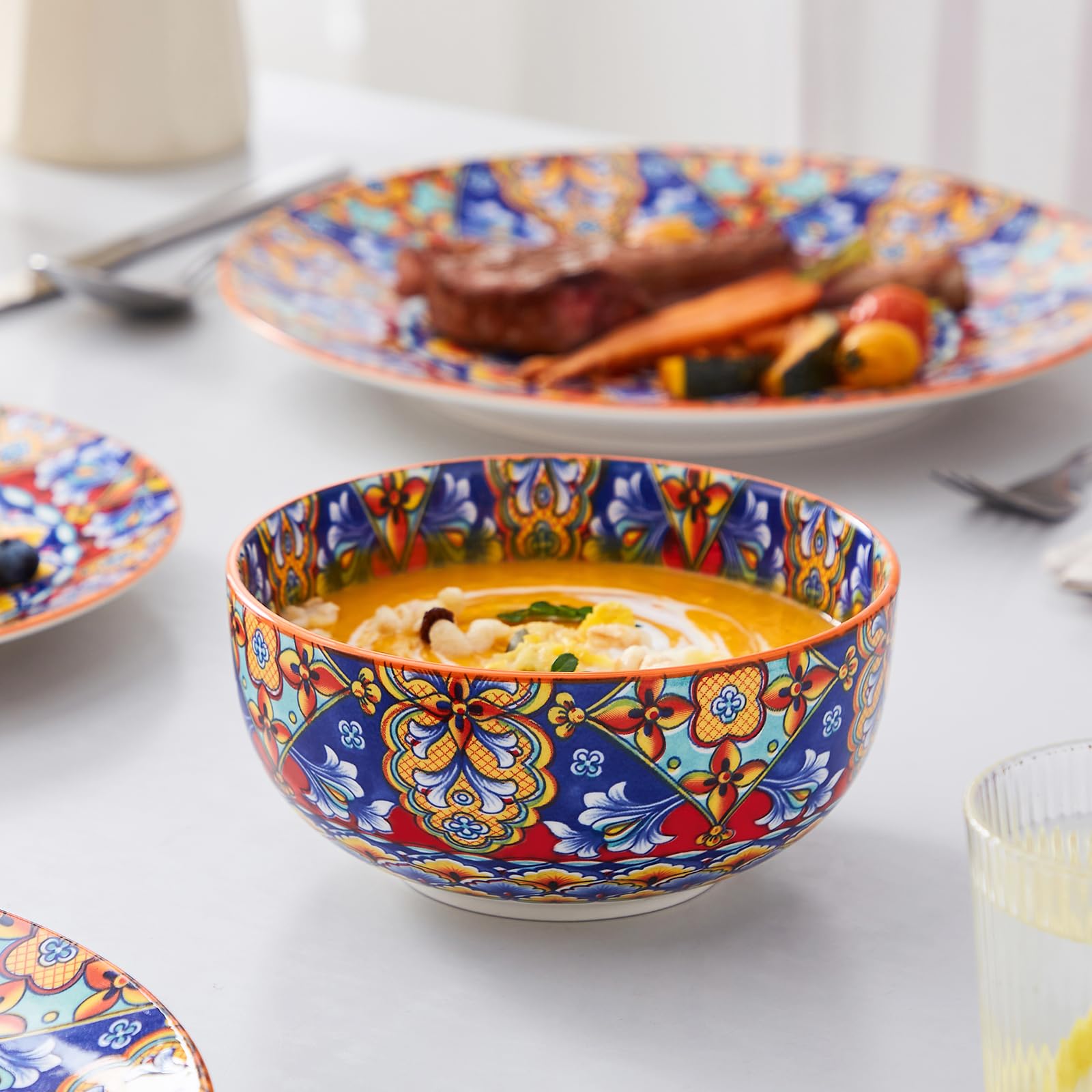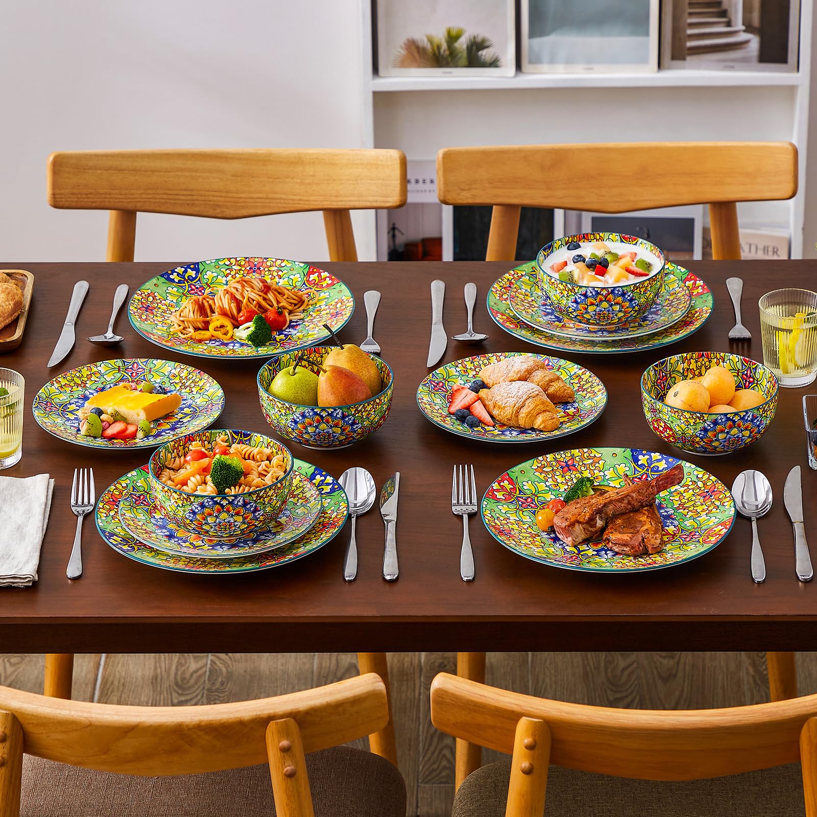 • 【Vibrant and Colorful Designs】vancasso bohemian style dishes set for 6 boast enchanting and intricate designs that capture the free-spirited essence of Bohemian culture. The lively colors and artistic patterns evoke a sense of joy and positivity, enhancing your dining experience with a burst of energy and happiness.