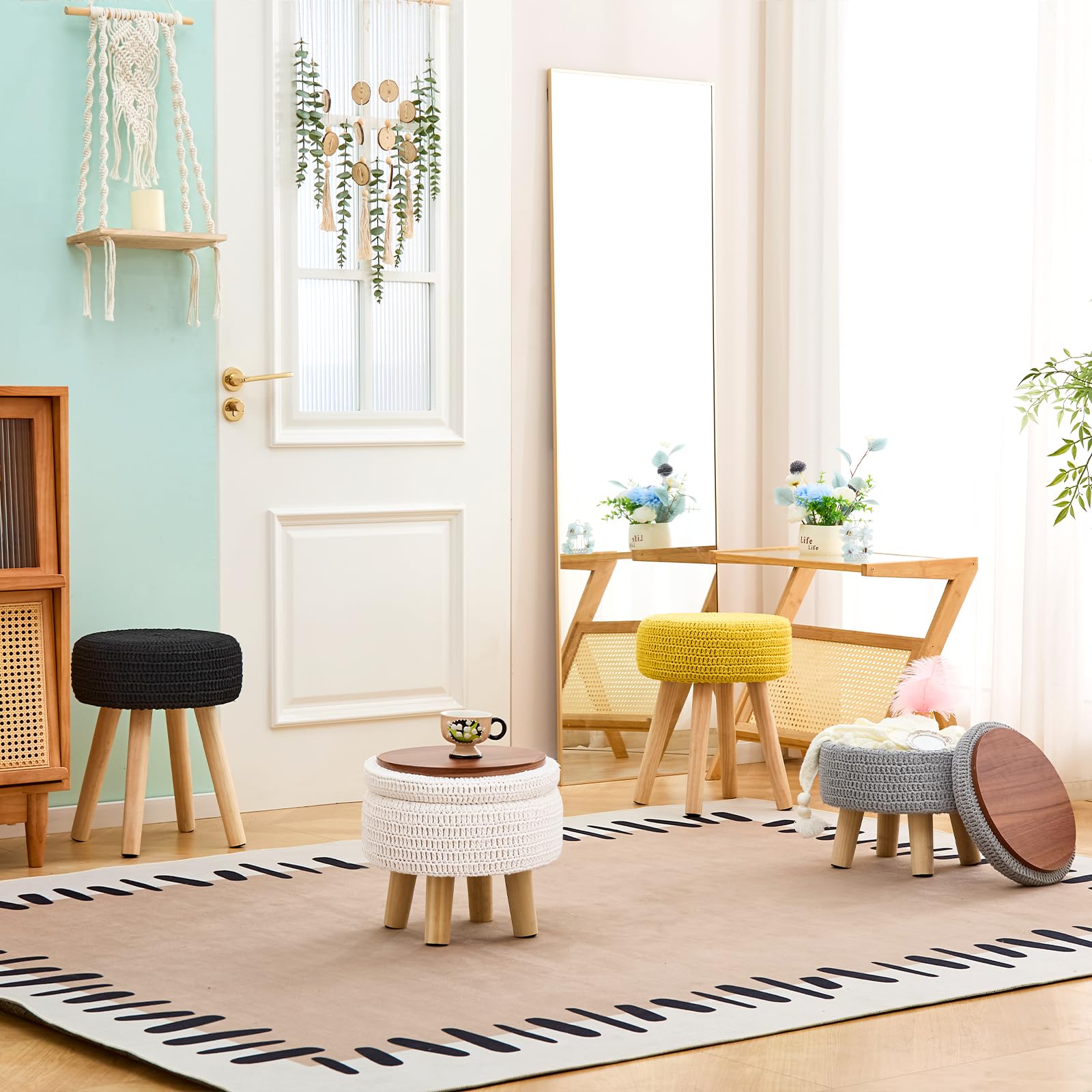 • Many Colors to Choice: These small stools come in a wide variety of colors for your convenience. Gray, Black, Yellow, Cream and more. Each one is as stunning as the last. Different color stools create different breath for your home decor, such as Bohemian, Mediterranean, and Rustic styles