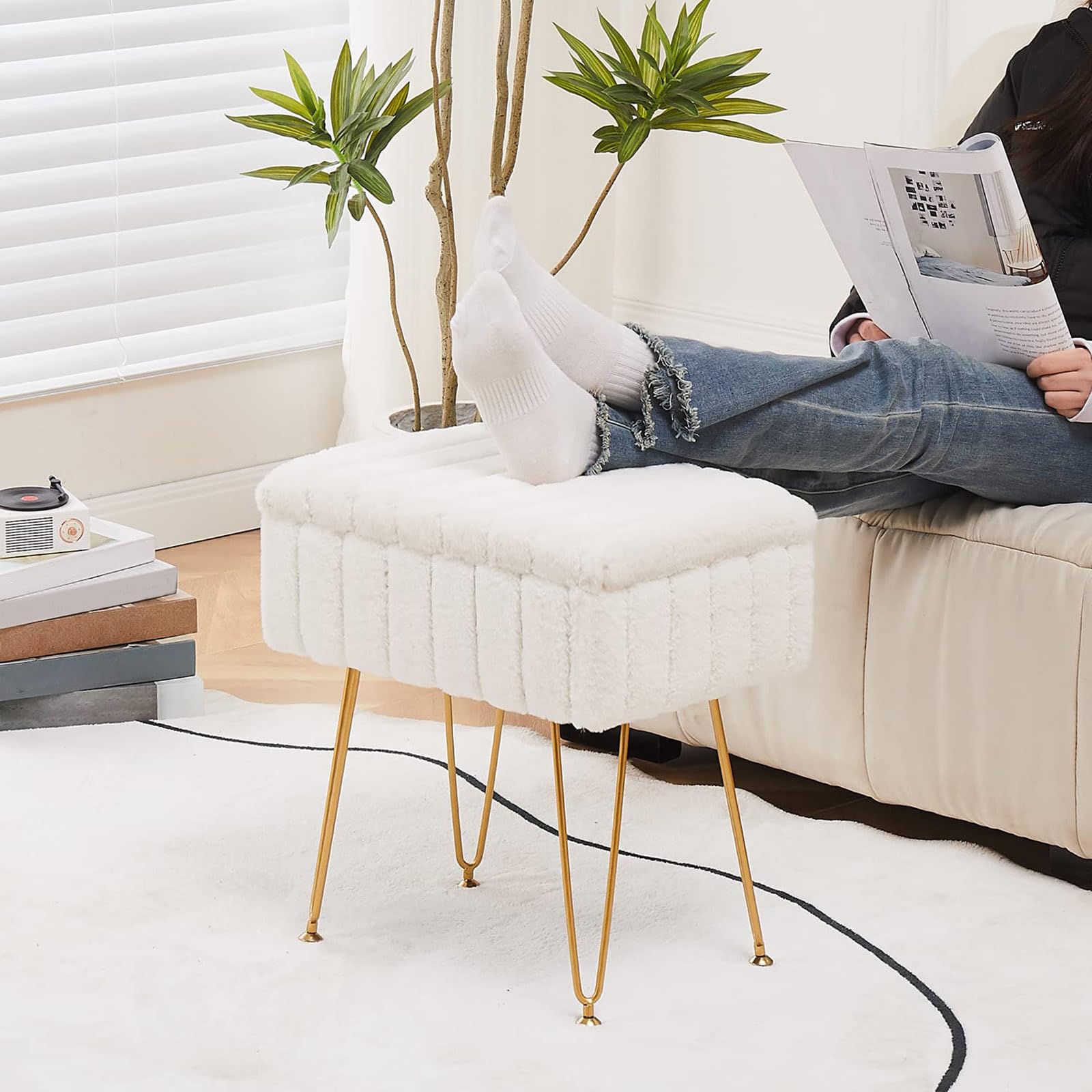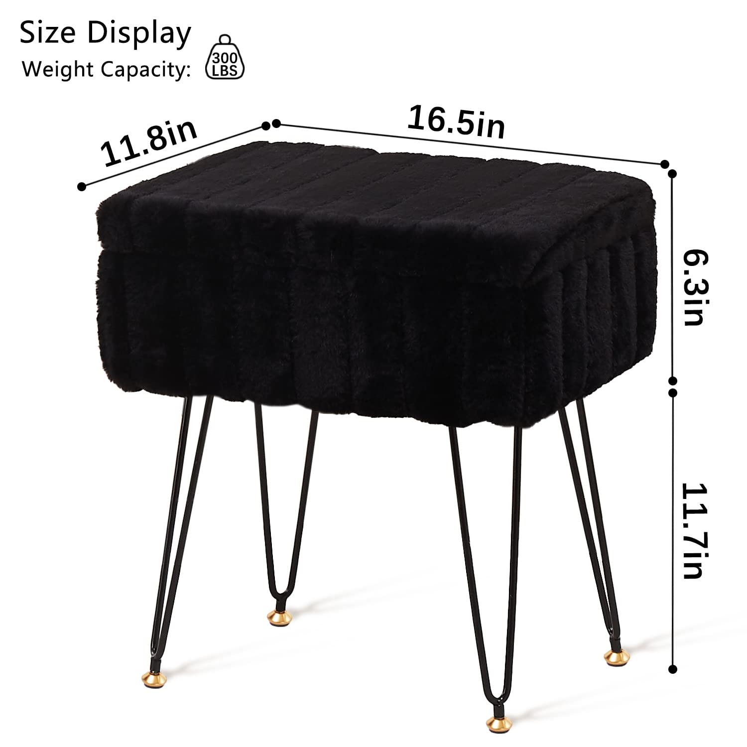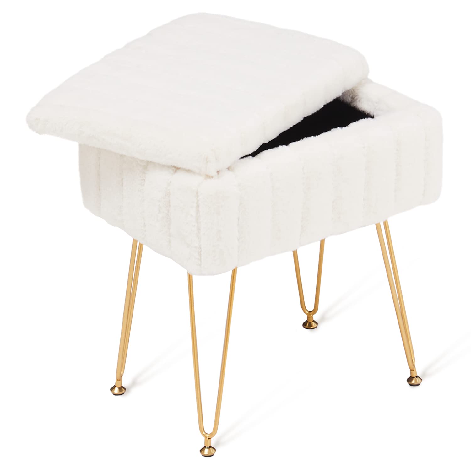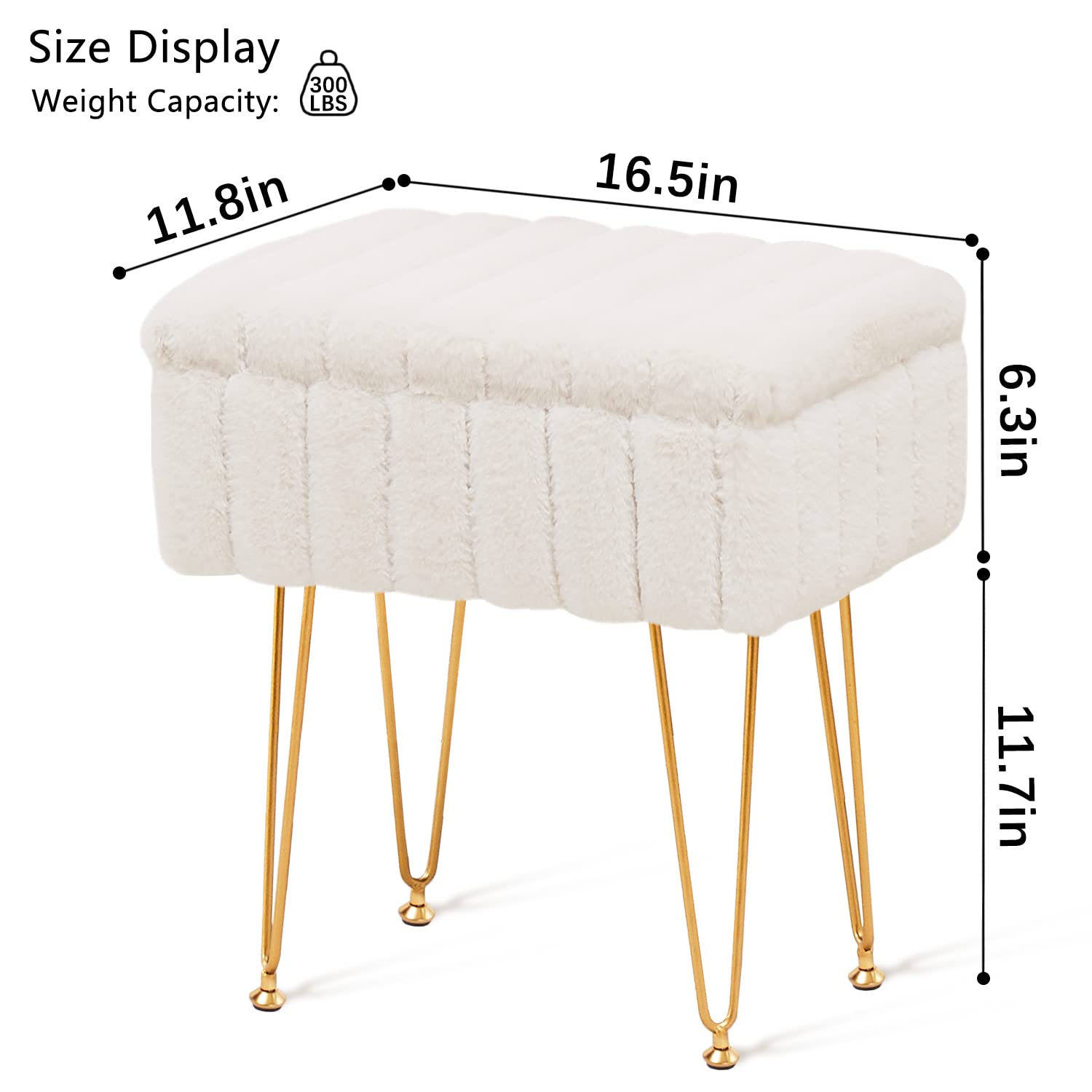 Wimarsbon Storage Ottoman, Vanity Stools with Metal Legs, 16.5" x 11.8" x 18" Modern Faux Mink Fur Footstool, Makeup Chair with Anti-Slip Feet, Accent Table,Footrest,Storage Bench for Bedroom