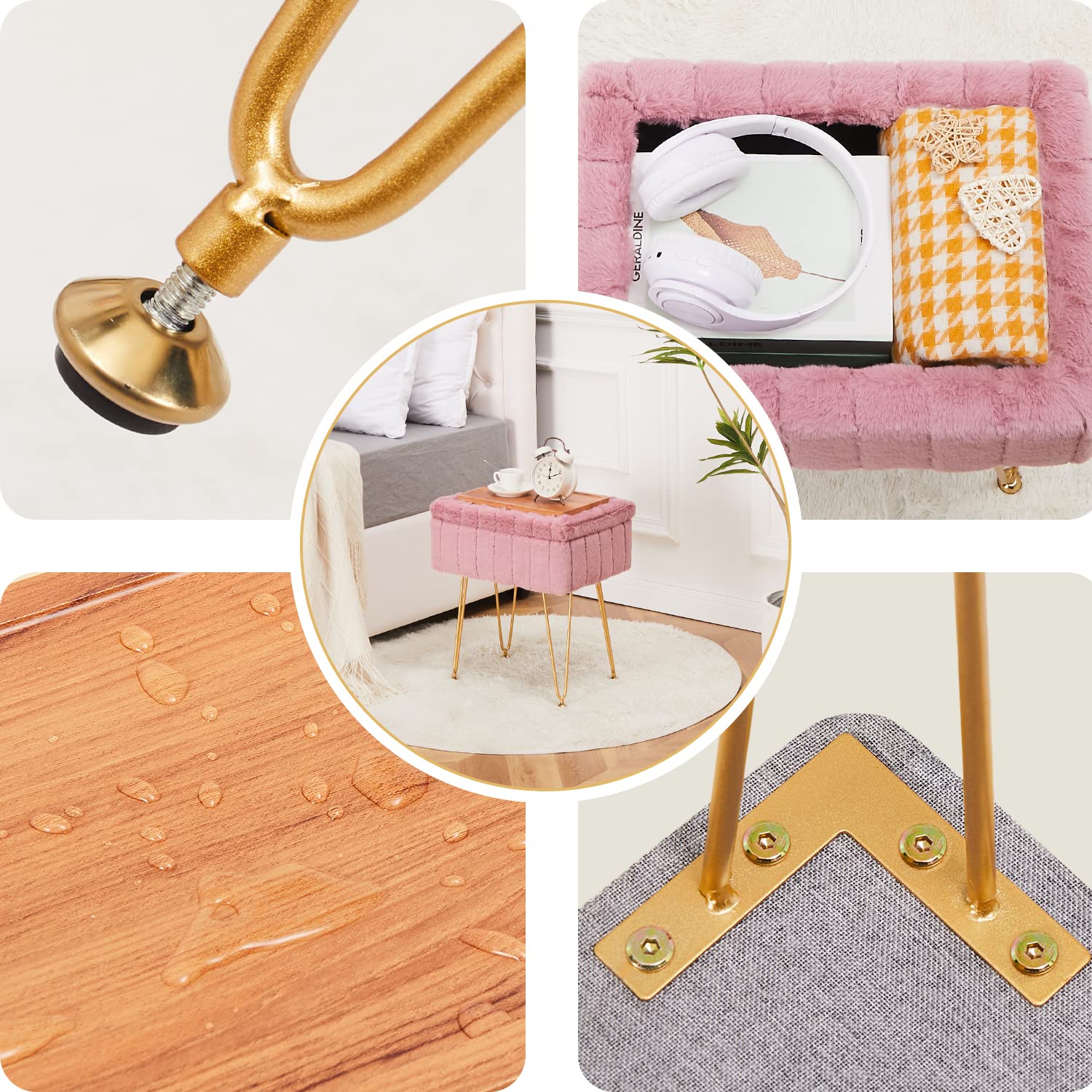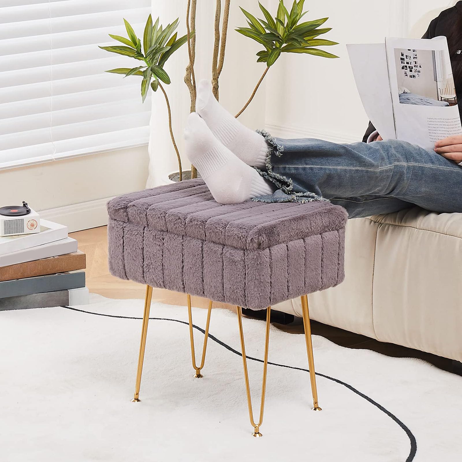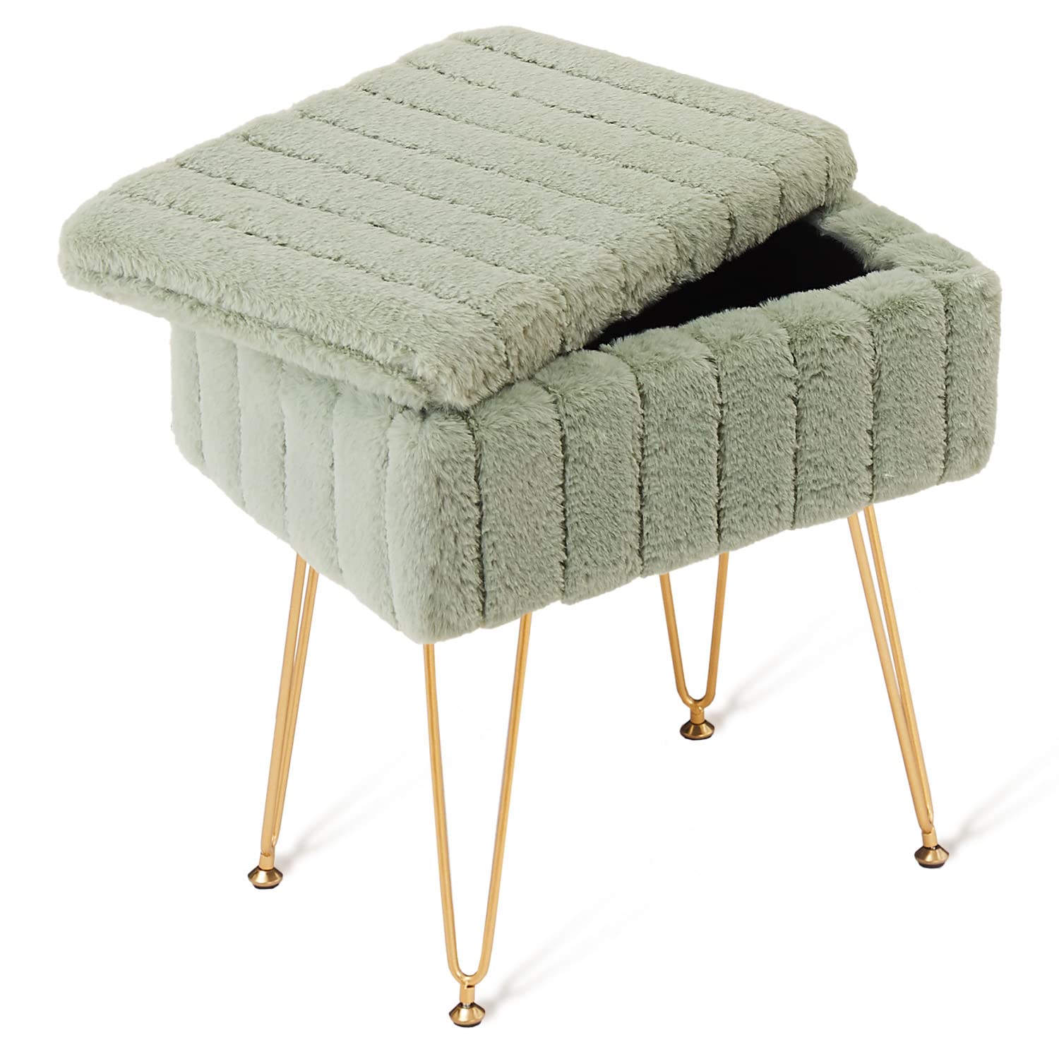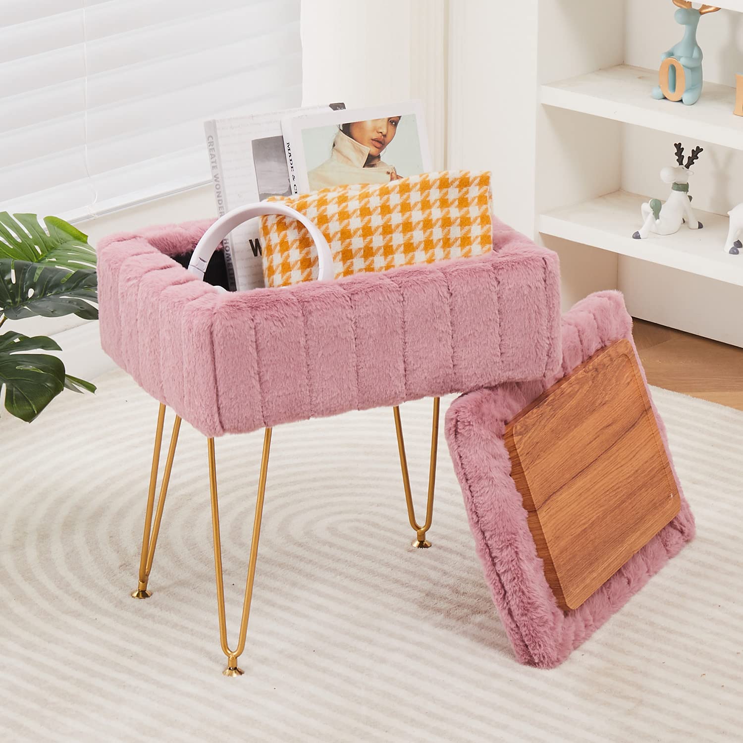 Wimarsbon Storage Ottoman, Vanity Stools with Metal Legs, 16.5" x 11.8" x 18" Modern Faux Mink Fur Footstool, Makeup Chair with Anti-Slip Feet, Accent Table,Footrest,Storage Bench for Bedroom
