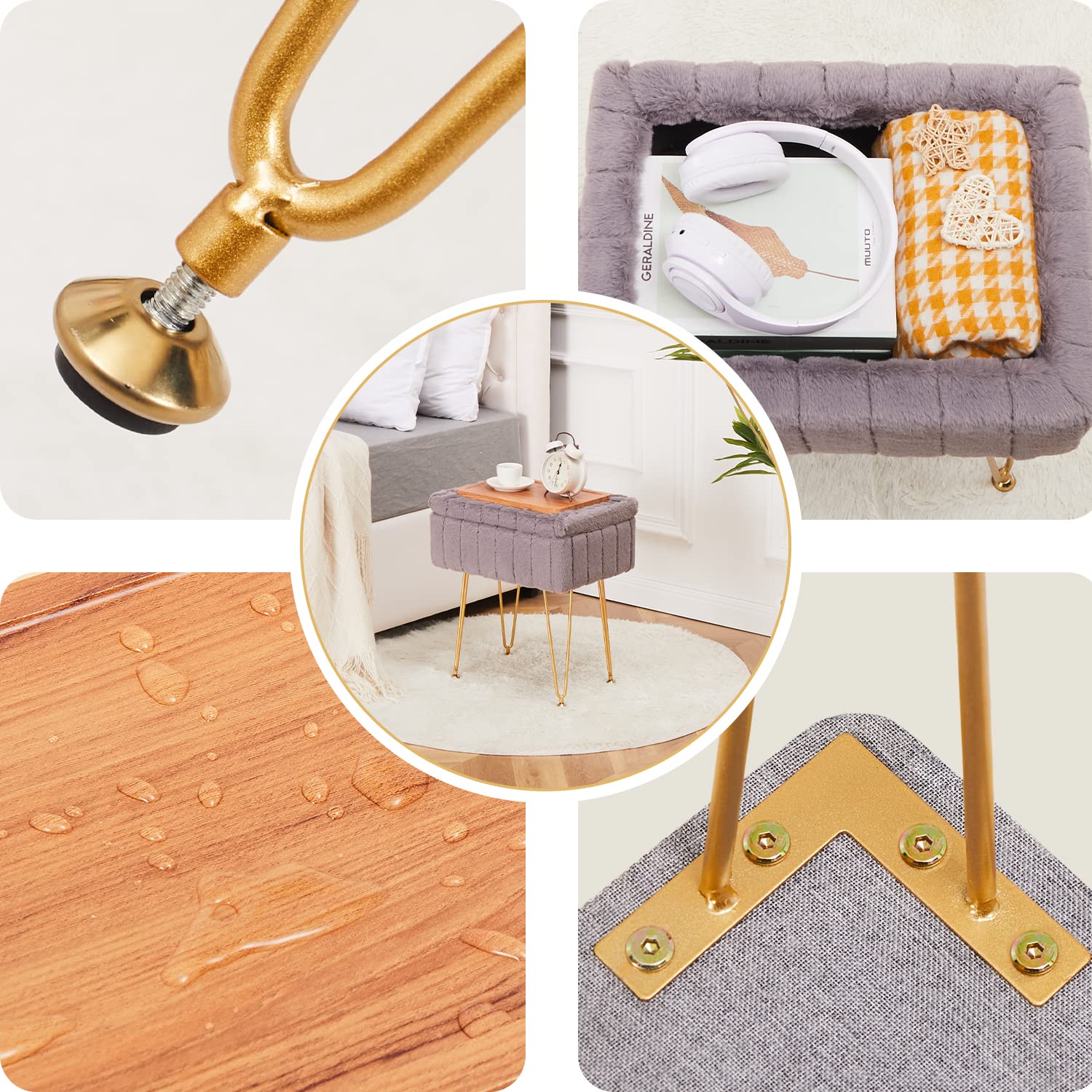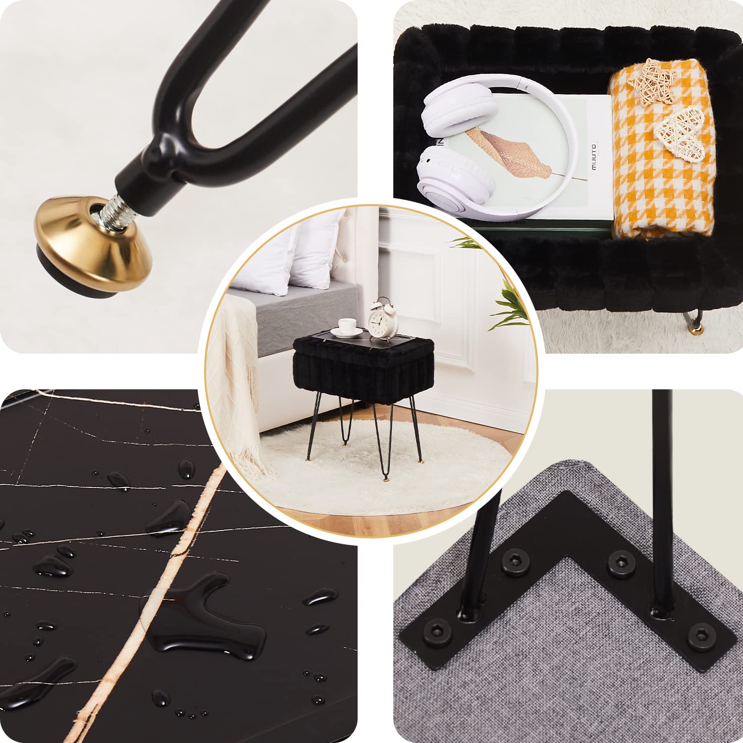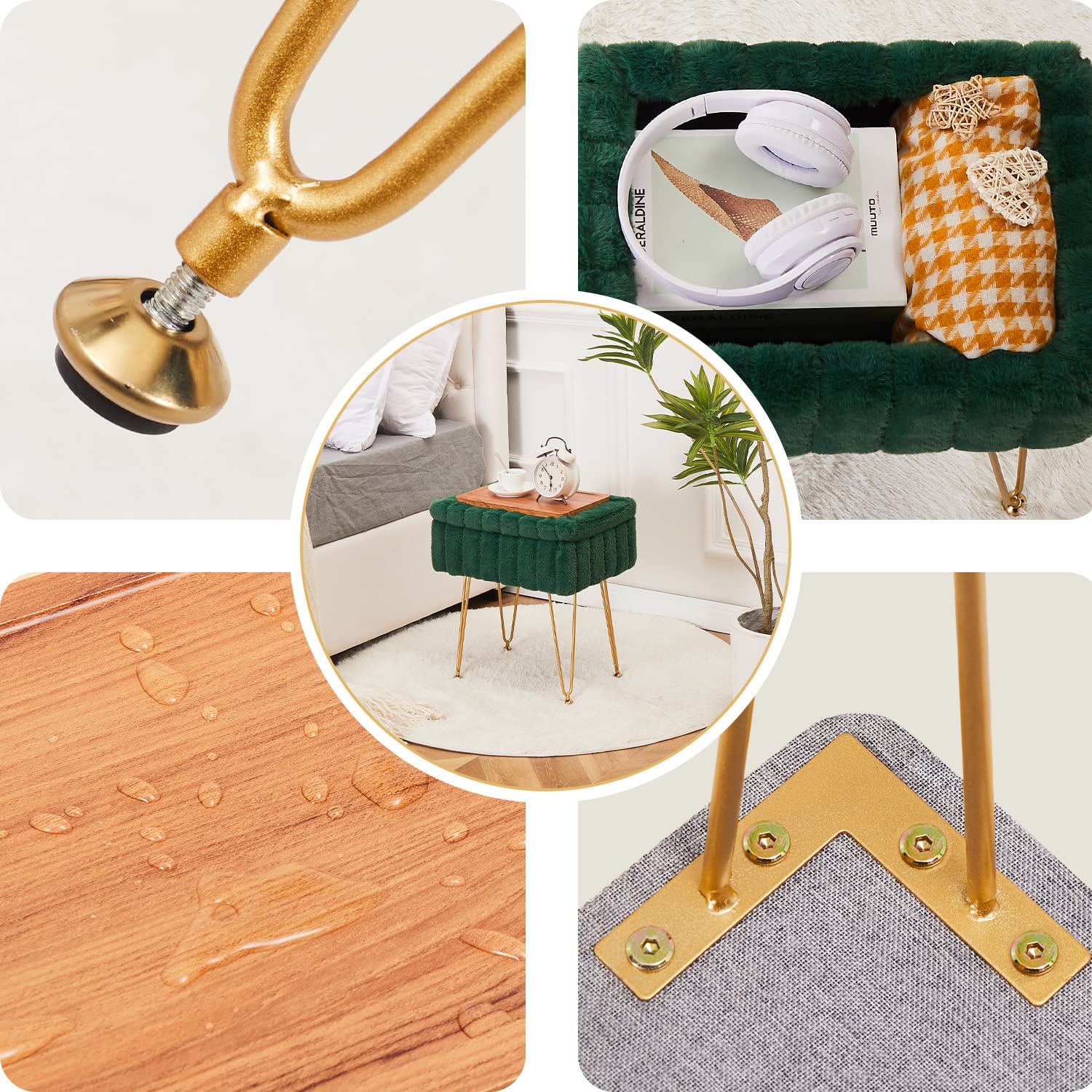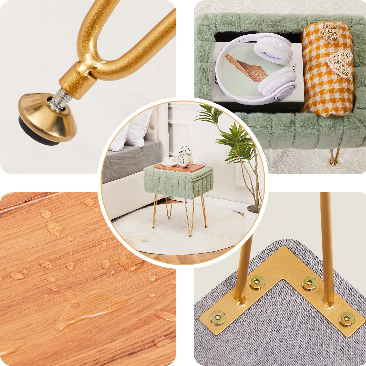 Wimarsbon Storage Ottoman, Vanity Stools with Metal Legs, 16.5" x 11.8" x 18" Modern Faux Mink Fur Footstool, Makeup Chair with Anti-Slip Feet, Accent Table,Footrest,Storage Bench for Bedroom