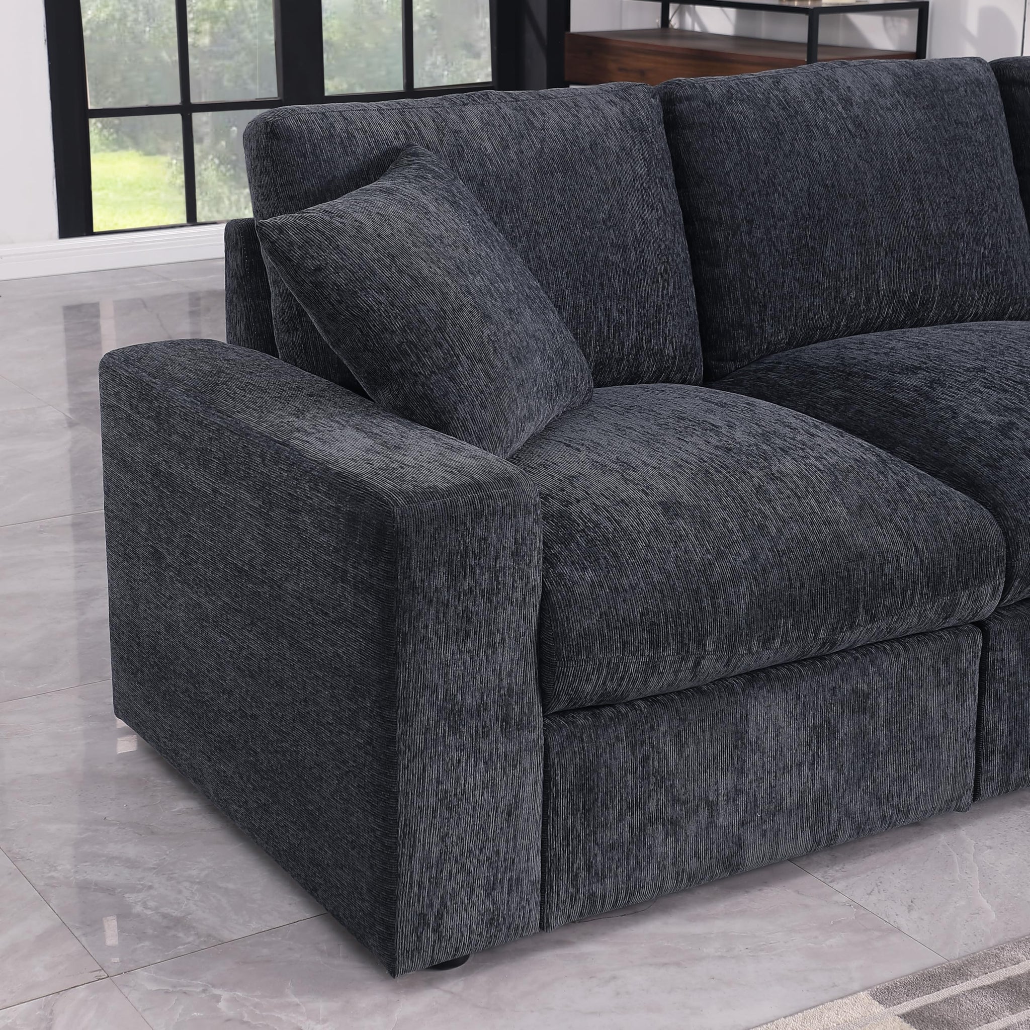 SUAWY 108 Inch Sectional Sleeper Sofa with Pull Out Bed,U Shaped 7 Seat Modular Sectional Sofa with Storage,Sectional Couches for Living Room,Cloud Modular Couch,Removable Sofa Cover,Dark Grey